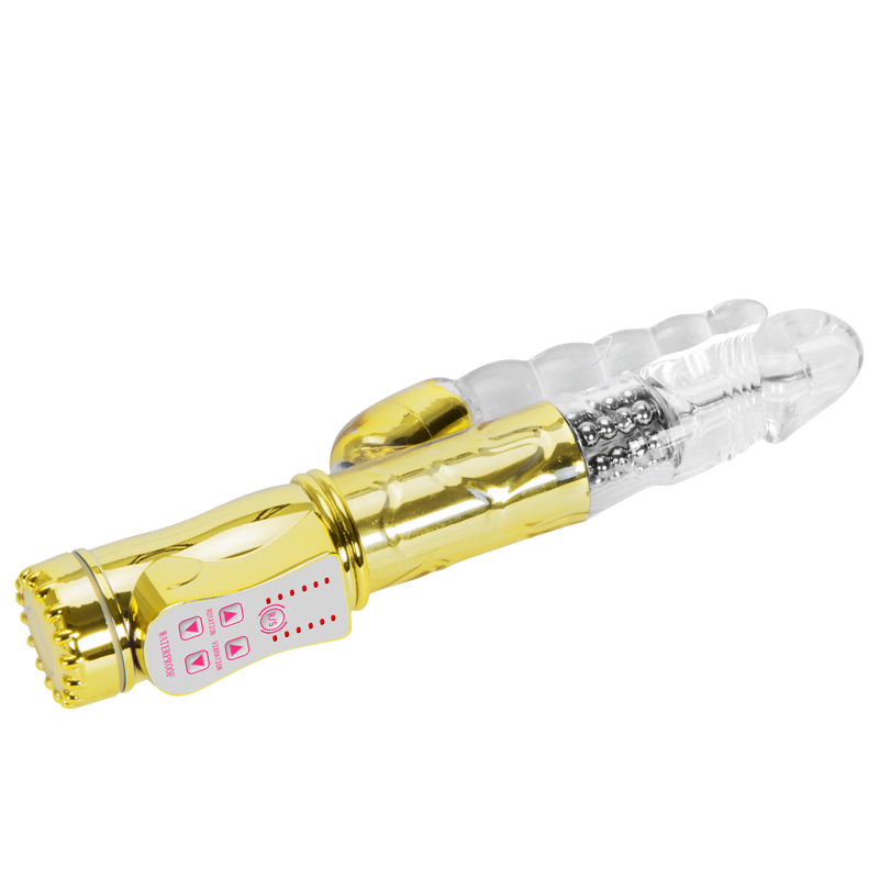 Function: 6 Frequency Vibration & RotationColor: Golden/Purple/RoseSize: 24 * 3.5 cm/9.4″ * 1.4″Insert Length: 15 cm/5.9 InchesNet Weight: 165 g/0.36 lb/5.8 ozPower: 4 AAAMaterial: ABS + TPEPackage: Color BoxFurther: Waterproof, 2 Motor