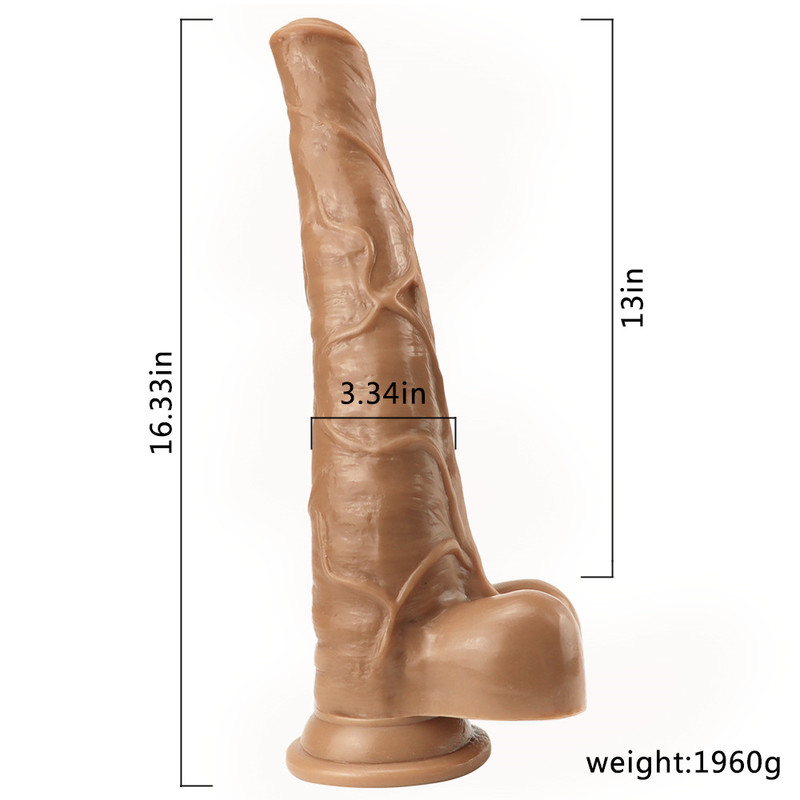Function: Realistic DildoColor: Brown/BlackSize: 41.5 * 8.5 cm/16.3″ * 3.3″Insert Length: 33 cm/13″Net Weight: 1960 g/4.3 lb/69.1 ozPower: NoMaterial: PVCPackage: OPP BagFurther: Non-toxic?