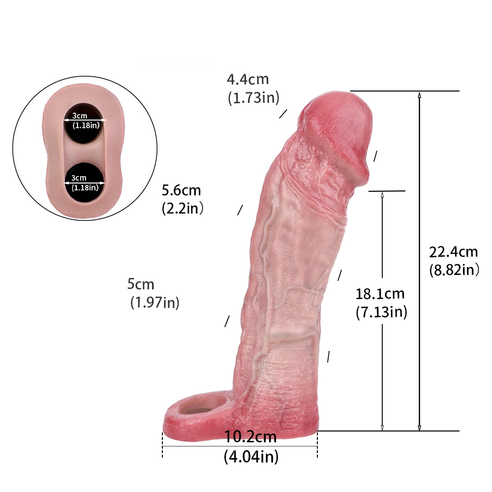 Go from satisfying to mind-blowing! This flexible & realistic penis extender fits over your shaft, instantly adding your length and boosting your width too! The ribbed interior adds stimulation and creates natural suction you??ll love. A stretchy ball strap keeps it on securely, so you can thrust away with confidence.Function: Penis Extension SleeveColor: FleshSize: 22.4 * 5.6 cm/8.83 * 2.21 inchInsert Length:18.1 cm/7.13 inchNet Weight: 364 g/0.80 lb/12.84 ozPower: NoMaterial: SiliconePackage: OPP BagFurther: Soft/Non-toxic