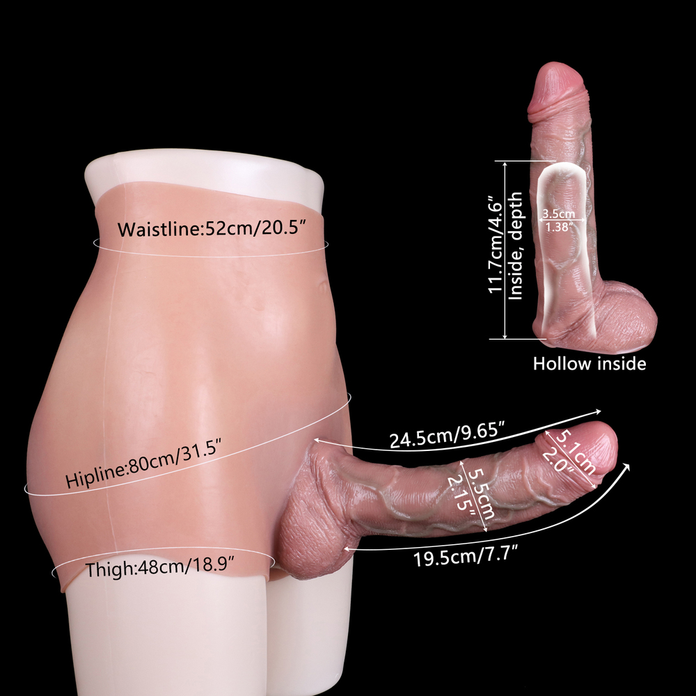 This lifelike cocksleeve underwear is designed to provide a natural and enhanced experience, combining the look and feel of a real penis with the convenience and support of wearable strapon pants. Perfect for men seeking to boost their size and stamina, this sex toy offers both partners an unforgettable experience.Function: Strapon Wearable Hollow DildoColor: FleshDildo Size: 24.5 * 5.5 cm/9.65 * 2.17 inchHollow Size:11.7 * 3.5 cm/4.61 * 1.38 inchWaist: 52.0 cm/20.49 inchHip:80.0 cm/31.52 inchThigh:48.0 cm/18.91 inchNet Weight: 1330 g/2.93 lb/46.91 ozPower: NoMaterial: ABS + SiliconePackage: Color BoxFurther: Washable/Hollow Dildo