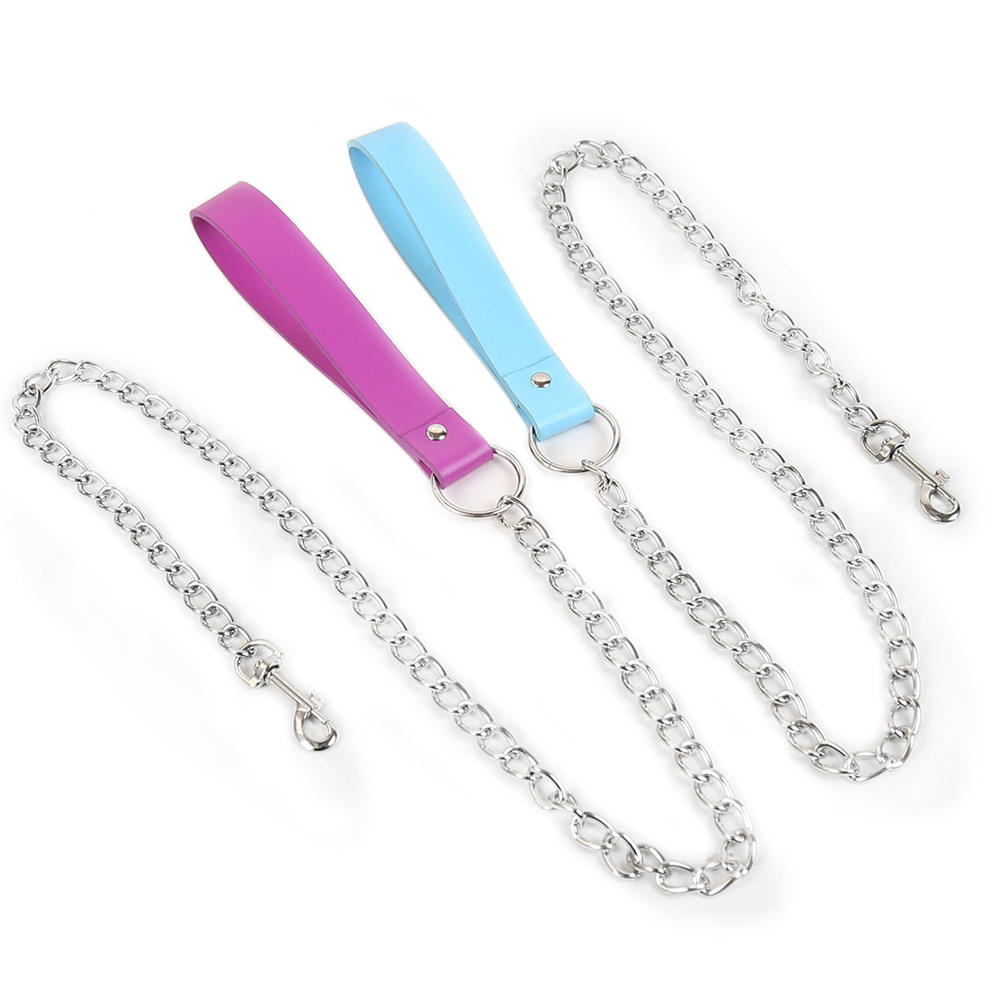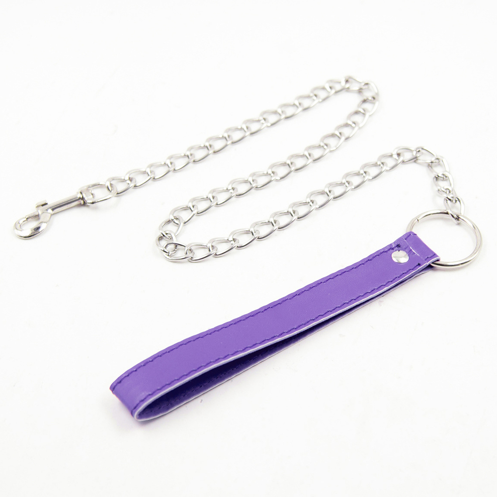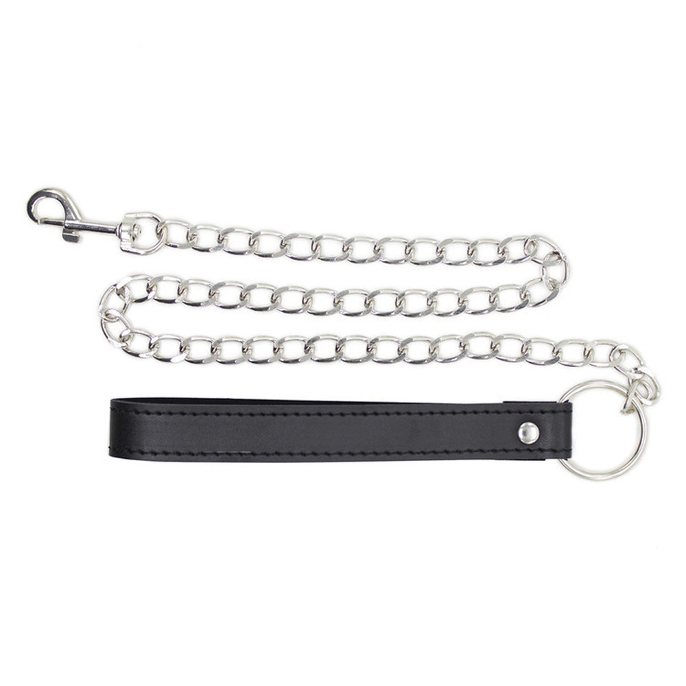 Handmade in our workshop for human dogs, slaves and objects, this leash features a heavy metal chain with a soft stitched leather hand loop.
