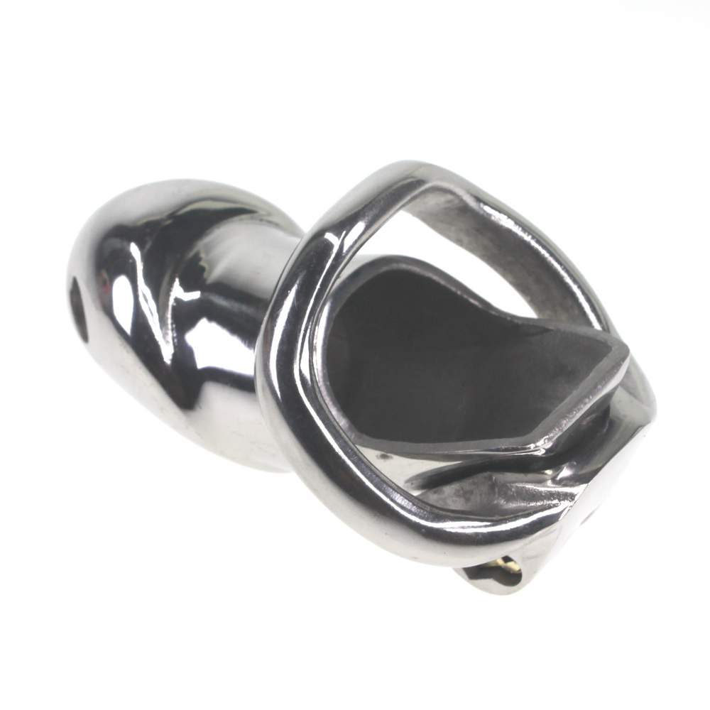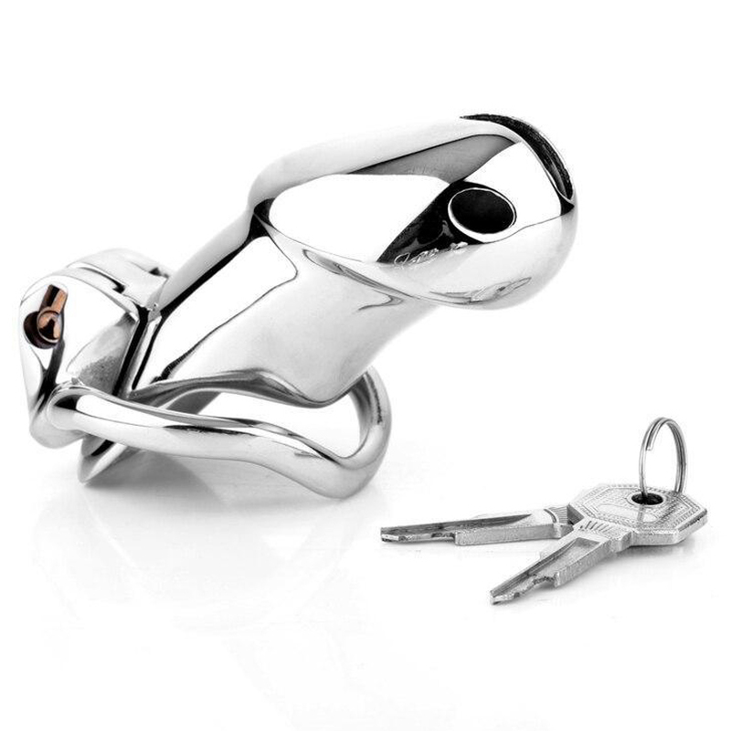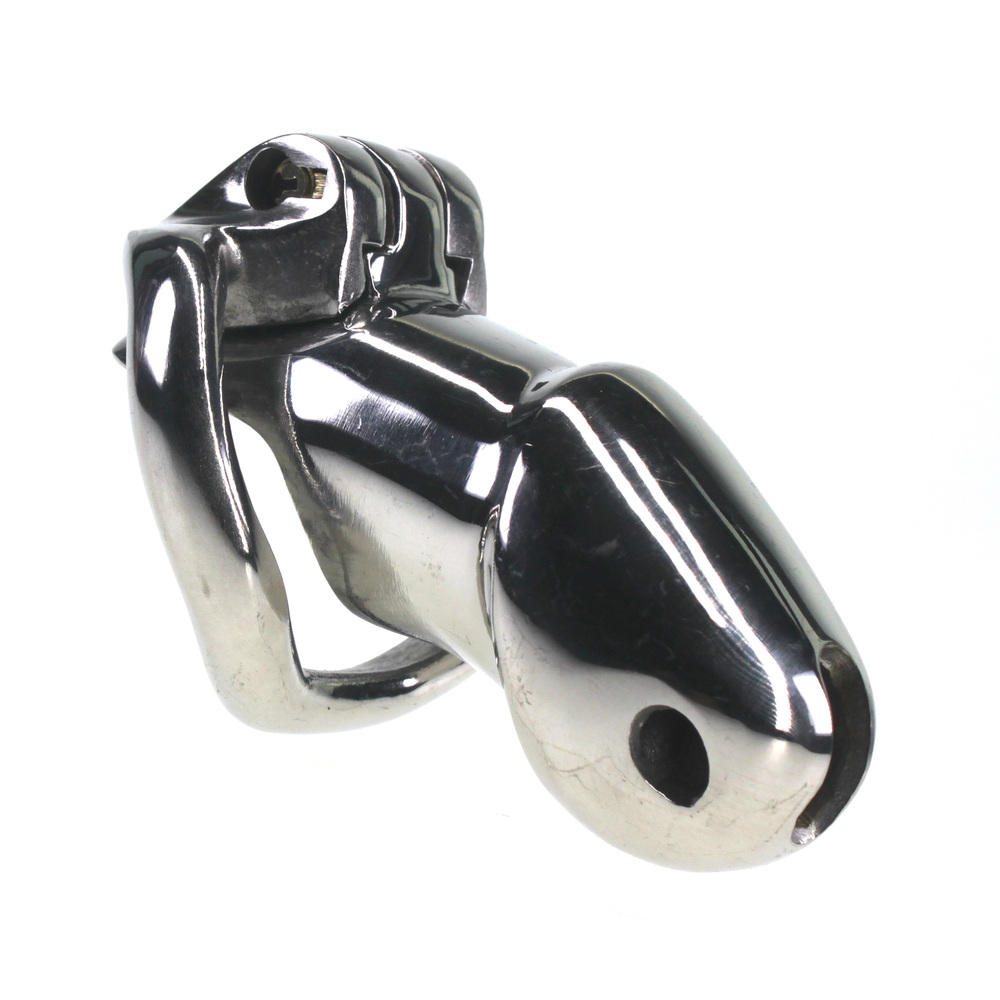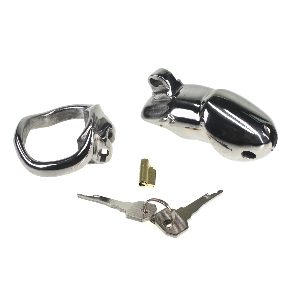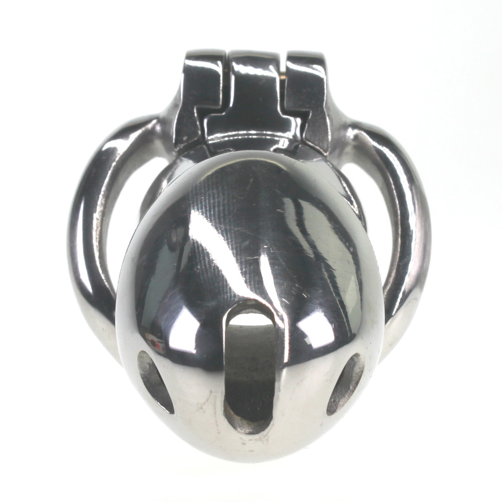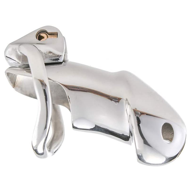 Keep your slave confined all day and all night! This chastity device has a uniquely compact design, with an internal locking system that prevents a bulky appearance under clothing. Insert the key into the brass keyhole and turn to straighten out the lock. The lock can then be inserted into or removed from the hinge. With another twist of the key, your slave will be helplessly trapped until you decide to show mercy! Great for sissification, cuckolding, and slaves. Made of stainless steel, this cage is non-porous and phthalate-free.?