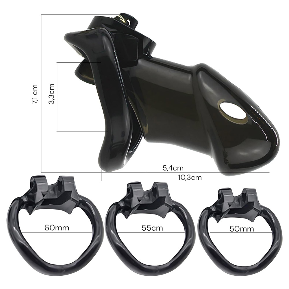 The beauty of using a chastity device on your partner is that you’re able to control if he is able to achieve a full, complete erection. With the Rikers chastity device, you’ll be able to keep him secure, completely under your control. The rings of the chastity device are made to stay in place, so you can be certain he isn’t going anywhere. The Rikers comes with a cock cage, three different sized rings, a locking chamber, and a lock with two keys. Because the Rikers is designed using a polycarbonate material, it is lightweight, hypoallergenic, and durable. Polycarbonate material will not crack and is ideal for long term use.