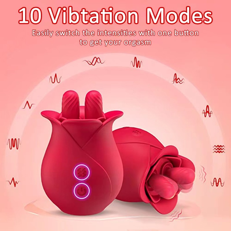 Tongue Licking Clitoral Rose Vibrator 10 Wiggling Vibrating Clitoris Nipple Massager