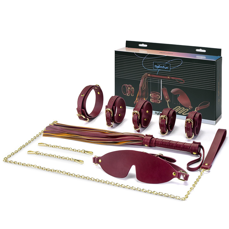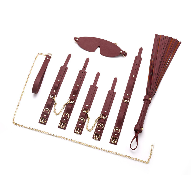This luxurious set includes one pair of wrist cuffs, one pair of ankle cuffs, a blindfold and a whip There’s also a collar with a detachable chain lead and a pair of linking chains that you can use to adjust multiple postures to meet your desires. It’s ideal for those embarking on their first Dom/sub adventures.
