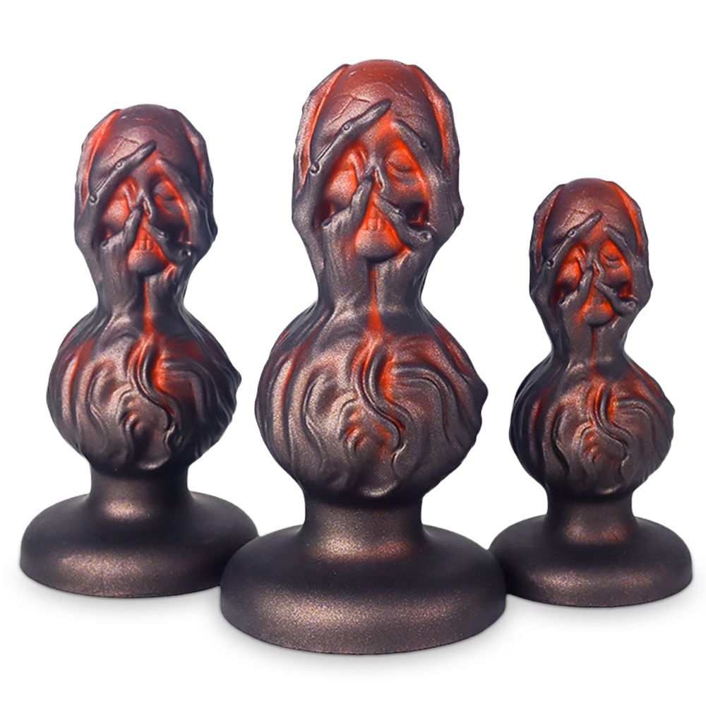 The Sacrilegious Skull Butt Plug stands out with its haunting design, featuring a meticulously crafted skull encased in claw-like hands and flowing, tendril-like textures. This gothic-inspired motif adds an edgy, powerful aesthetic that makes it more than just a toy ?C it??s a piece of art. The detailed carving gives it a unique, dark elegance that resonates with those who appreciate unconventional beauty.The Skull Butt Plug features a bold crimson-to-black gradient, creating a visually intense look that enhances its gothic charm. The transition between red and black exudes an aura of mystery, as if it were forged from shadows and fire. This color scheme is ideal for users drawn to dramatic, powerful visuals, adding an exciting, adventurous feel to each use.Function: Mixed color anal pleasure sex toyColor: Red and BlackSize:XS: 10.3 * 4.2 cm /4.06 * 1.65 inch (92 g/0.20 lb/3.24 oz)S: 14.0 * 5.8 cm /5.52 * 2.29 inch (229 g/0.50 lb/8.08 oz)M: 16.3 * 6.8 cm /6.42 * 2.68 inch (375 g/0.83 lb/13.23 oz)L: 18.5 * 7.7 cm /7.29 * 3.03 inch (540 g/1.19 lb/19.05 oz)XL: 21.5 * 8.0 cm /8.47 * 3.15 inch (741 g/1.63 lb/26.14 oz)Insert Size:XS: 9.4 cm /3.70 inchS: 12.7 cm /5.00 inchM: 14.2 cm /5.59 inchL: 16.3 cm /6.42 inchXL: 19.2 cm /7.56 inchPower: NoMaterial: SiliconePackage: OPP BagFurther: Soft/Non-toxic/Skeleton/Monster anal plug/Multi-Color