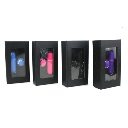 The wireless bullet vibrator measures 0.75 inches wide and 2.25 inches long. Made from plastic, the bullet is coated with a special smooth covering to make it feel softer and smoother than usual. The vibrator is powered by 3 LR44 watch batteries, included.?
