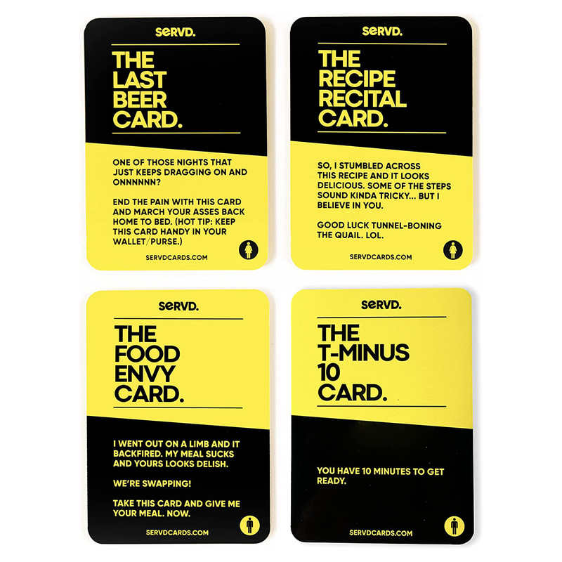 Play a card, and suddenly you get out of visiting the in-laws. Play another to summon a partner to pick you up when you don??t feel like paying for an Uber. Alternatively, maybe they get to dress you up for a night out and instruct you when it??s time for some manscaping.Cards can be counteracted, played on top of each other and shut down, making Servd a game of strategy and careful planning. After agreeing to a time frame, you split the cards up with the other player having their own set of unique cards and start using when appropriate.There are five different Servd decks available, each tailored to a specific type of relationship: His & Hers, His & His, Hers & Hers, BFFs and Bros. Pick your poison, split the deck and game that relationship.
