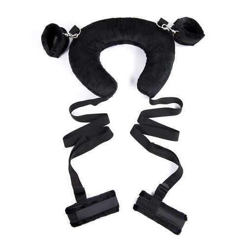 2 removable wrist cuffs made from nylon strap with a soft neoprene lining offer soft cushioning for wrists during play. Clipping onto the support pillow, they can be used as part of full-body restraint or choose to use them separately as handcuffs.