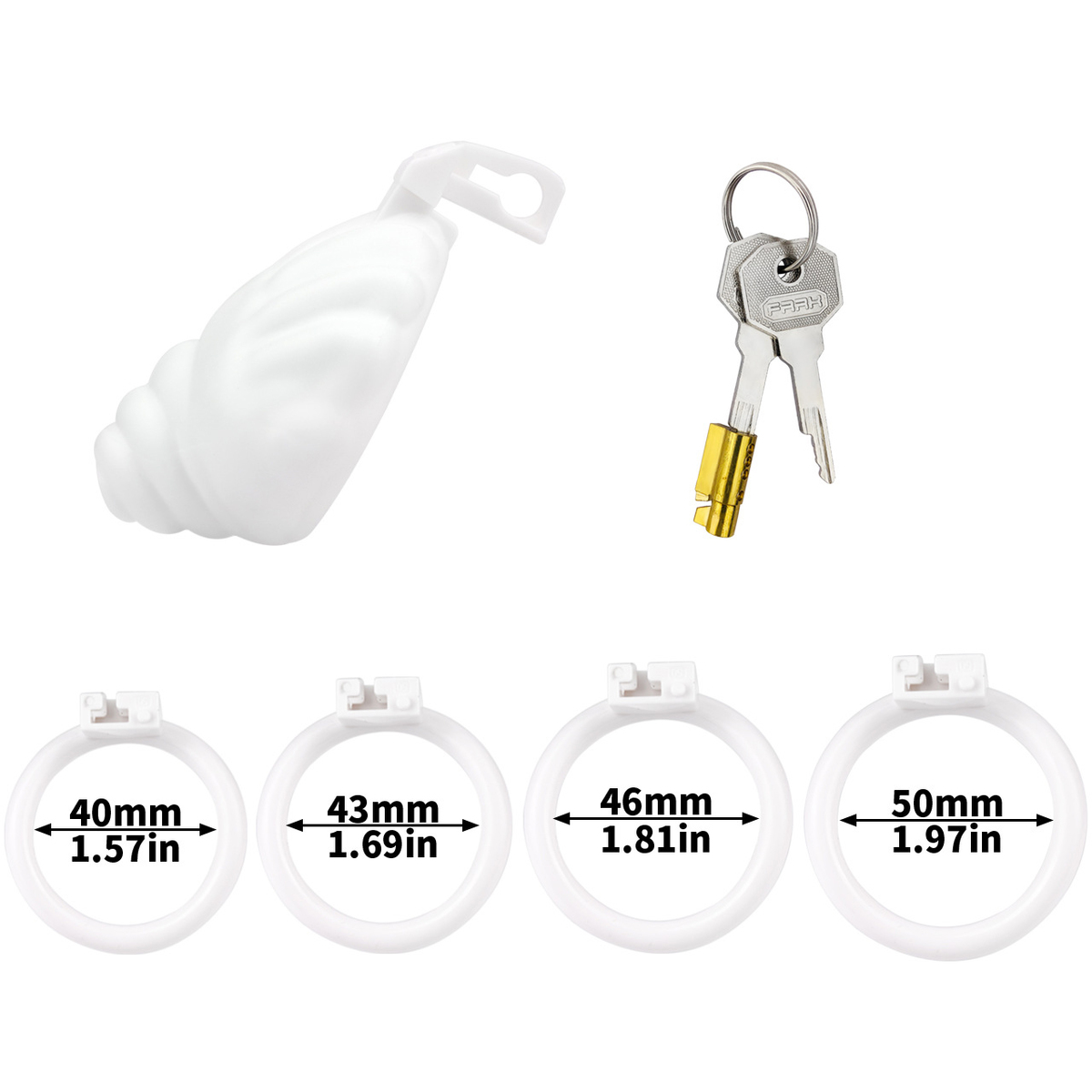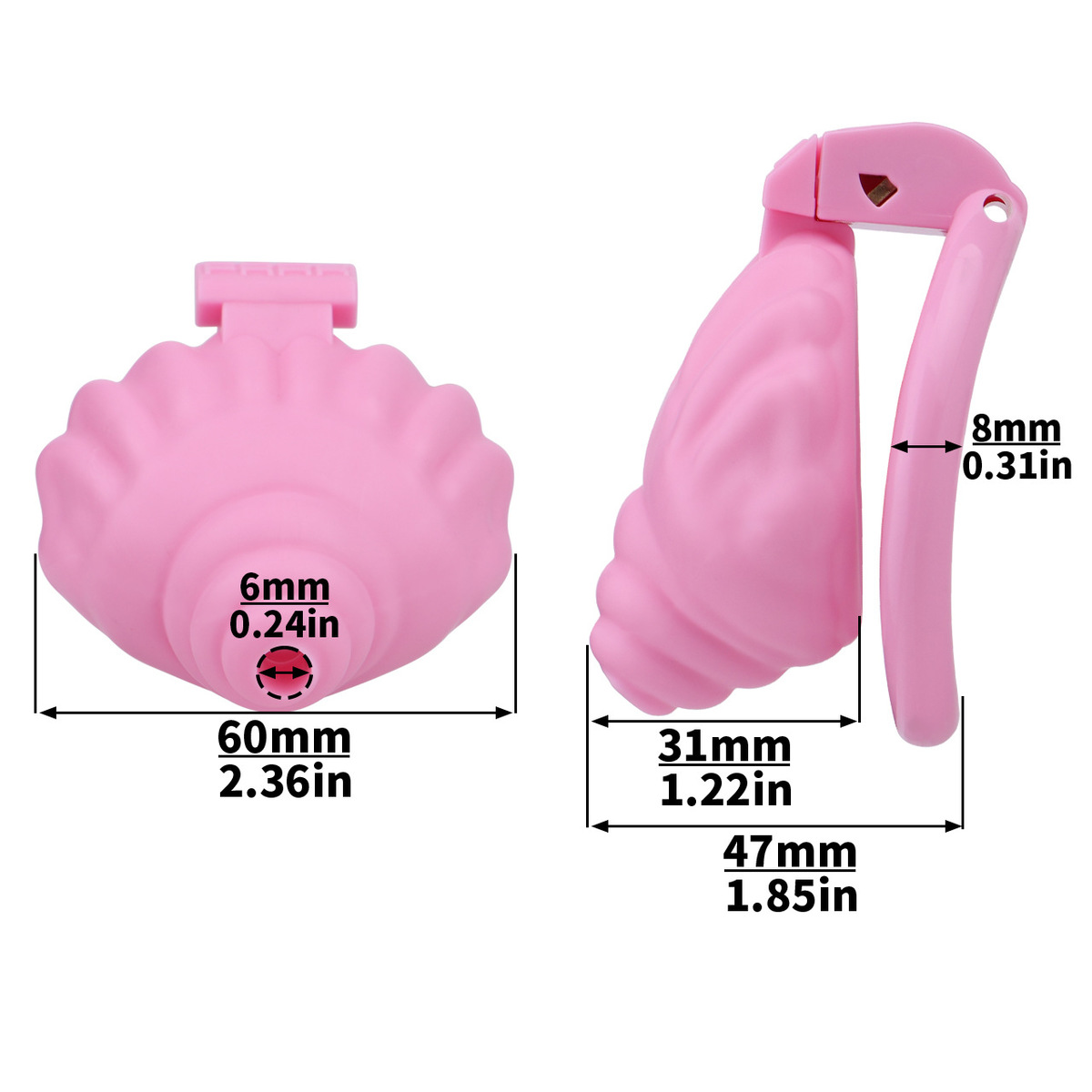 Explore a new realm of passion with our chastity device featuring a captivating seashell-inspired design. Crafted from premium resin, this device embodies elegance and comfort, ensuring a luxurious experience.Color: Pink/White/BlackCage Size: 3.1 * 6.0 cm/1.22 * 2.36 inchNet Weight: 91 g/0.20 lb/3.21 ozMaterial: ResinPackage: Color BoxRing Size:4.0 cm/ 1.58 inch4.3 cm/ 1.69 inch4.6 cm/ 1.81 inch5.0 cm / 1.97 inchIncludes:1 Chastity cage4 Base rings1 Lock with 2 keys