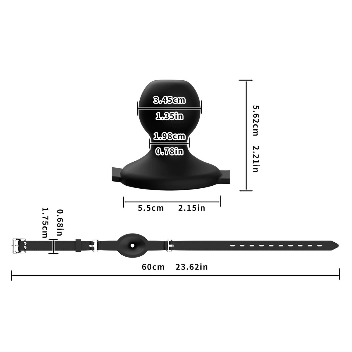 Function: Bondage Oral PlugColor: BlackGag Size: 5.6 * 3.5 cm/2.21 * 1.36 inchStrap Size: 60.0 * 1.8 cm/23.64 * 0.69 inchNet Weight: 95 g/0.21 lb/3.35 ozMaterial: SiliconePackage: OPP Bag