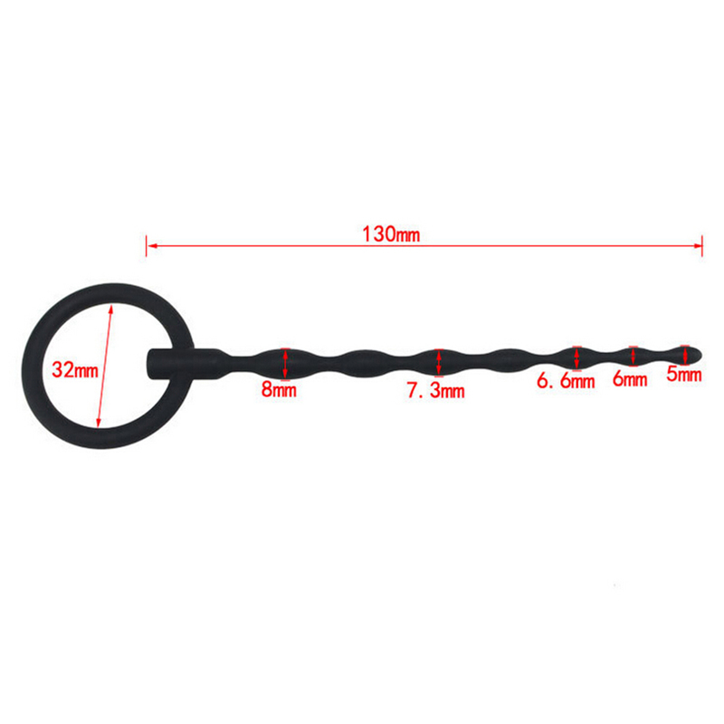Material: SiliconeColor: BlackNet Weight: 6 g/0.01 lb/0.2 ozLength: 13 cm/5.1 inchesInsert Length: 12 cm/4.7 inchesInsert Max Dia: 0.8cm/0.3 inchesGlans Ring Dia: 3.2 cm/1.3 inchPackage: OPP Bag