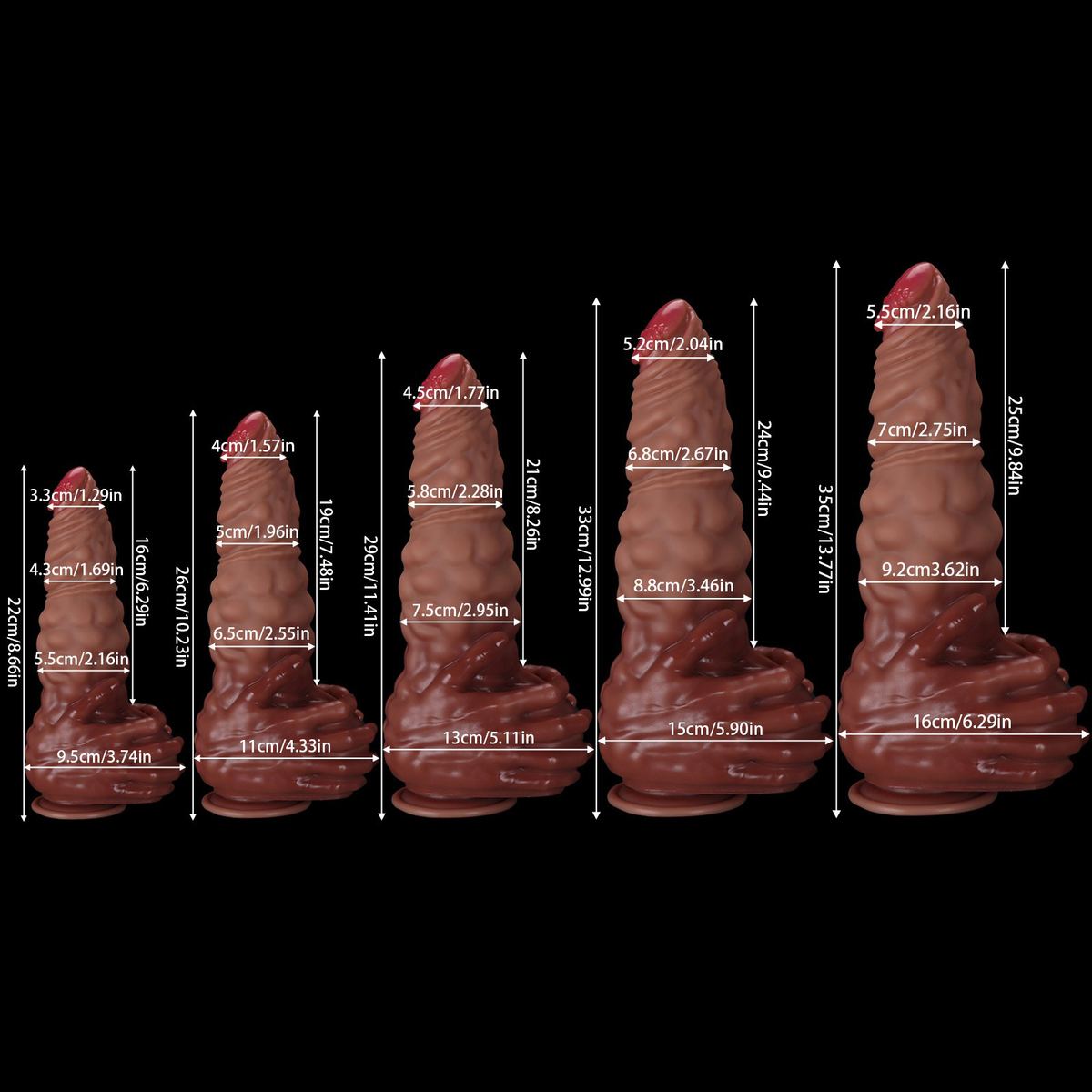 Not only is the tip sharp, making it easy for beginners to insert, but the protrusions on the tip surface provide a pleasurable stimulation to the opening of the vagina. The tip is shaped like multiple overlapping folds, which gradually expand from the moment of insertion, creating a unique sense of pressure inside. Furthermore, the entire body is covered with rounded, muscle-like protrusions. When inserted, these rub against the inner walls, providing a steady stimulation, and each movement adds pressure from different angles, creating a three-dimensional pleasure.Function: Realistic Dildo Sex ToyColor: BrownSize:S: 22.0 * 5.5 cm /8.67 * 2.17 inch (560 g/1.23 lb/19.75 oz)M: 26.0 * 6.5 cm /10.24 * 2.56 inch (880 g/1.94 lb/31.04 oz)L: 29.0 * 7.5 cm /11.43 * 2.96 inch (1290 g/2.84 lb/45.50 oz)XL: 33.0 * 8.8 cm /13.00 * 3.47 inch (2110 g/4.64 lb/74.42 oz)XXL: 35.0 * 9.2 cm /13.79 * 3.62 inch (2320 g/5.10 lb/81.83 oz)Insert Size:S: 16.0 cm /6.30 inchM: 19.0 cm /7.49 inchL: 21.0 cm /8.27 inchXL: 24.0 cm /9.46 inchXXL: 25.0 cm /9.85 inchPower: NoMaterial: SiliconePackage: OPP BagFurther: Soft/Non-toxic