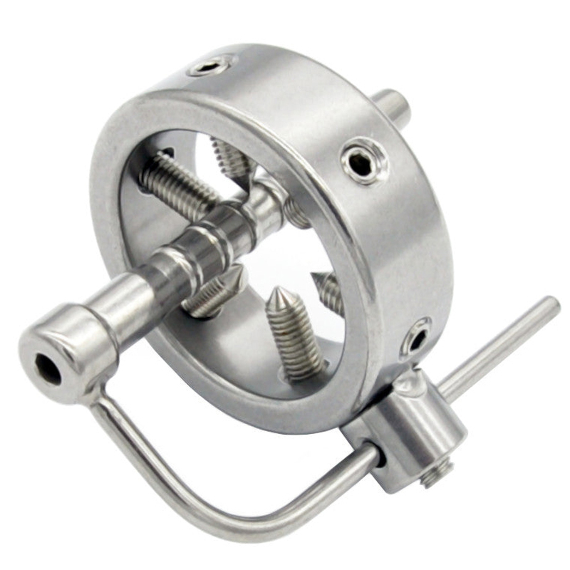 Heavy Duty Steel?The “Themis” – Glans Ring with Threaded Screws will give you more painful pleasure than just a extra long lasting erection.?It has six screws that can be tightened with an Allen wrench (included) to whatever tightness you desire.Color: SilverMaterial: Stainless SteelPackage: BagPlug Length: 6.25 cm/2.5 inchesInsert Length: 5.6 cm/2.2 inchesPlug Dia: 0.7 cm/0.3 inchesRing Inside Dia: 3.2 cm/1.3 inchesSpike Length: 1.6 cm/0.6 inches
