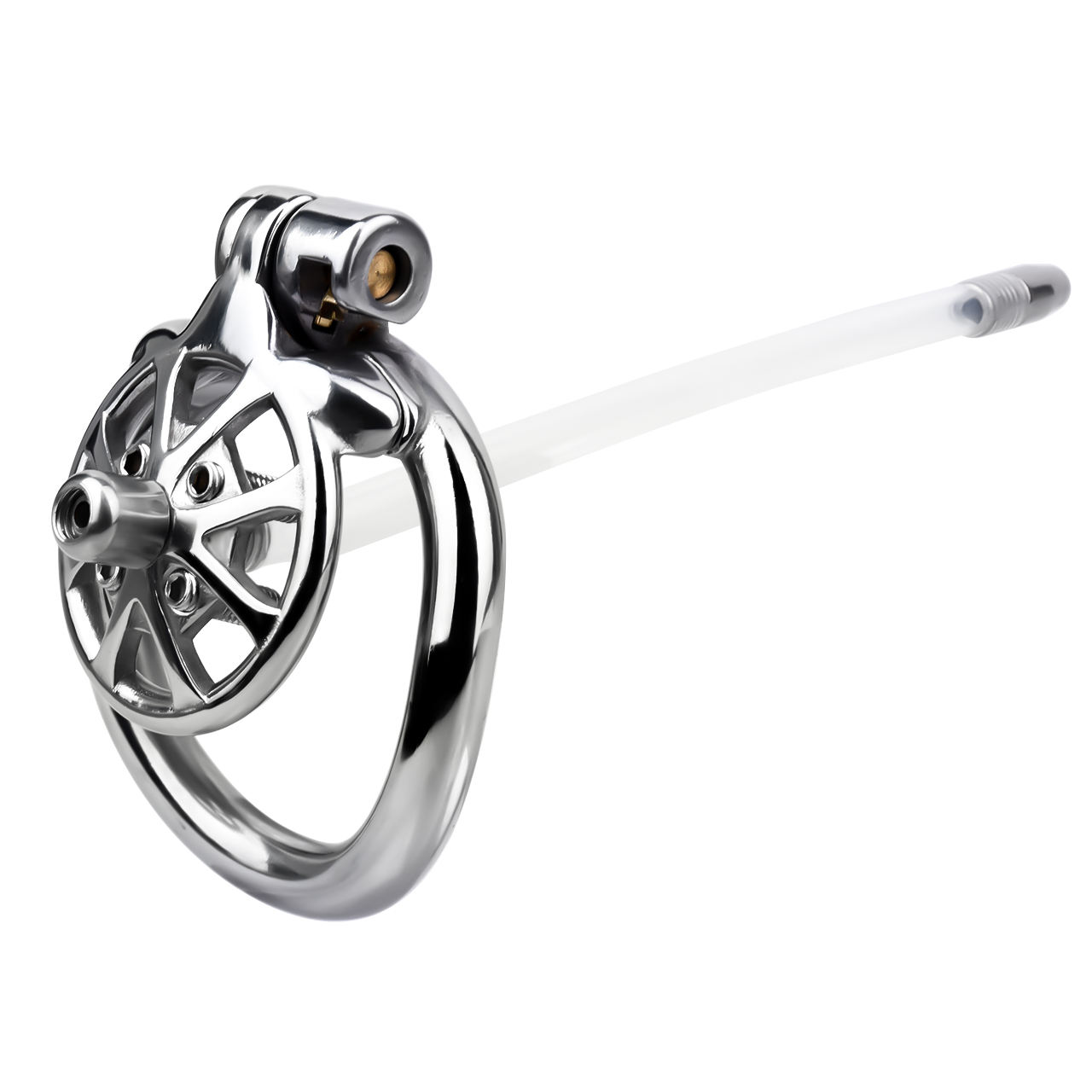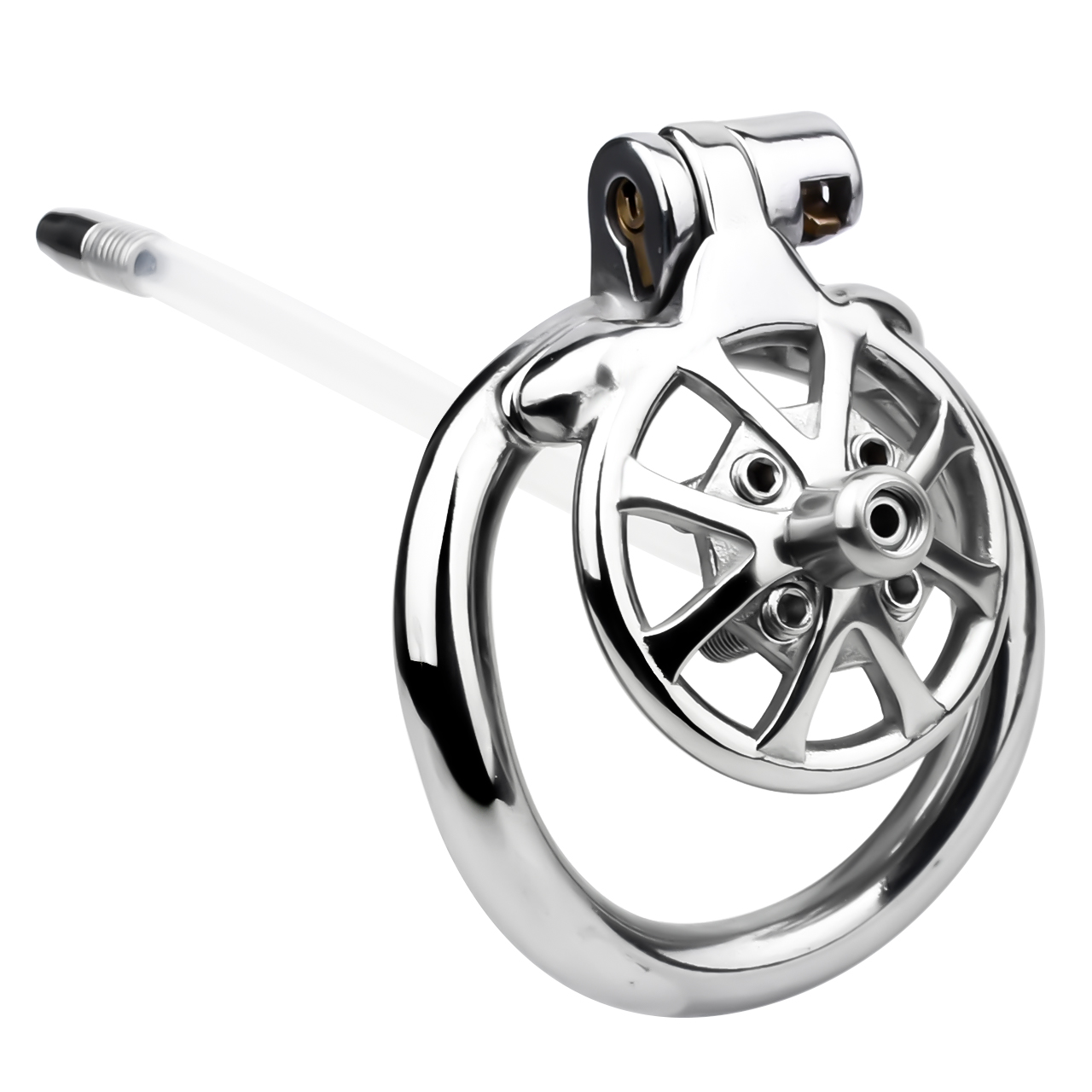 This male Spike Chastity Cage With Silicone Urethral Catheter is made of 304 stainless steel, which is safe, non-toxic, rust-resistant and can be worn for a long time. The design is inspired by wheels and comes with 4 rivets to stimulate your glans. The length can be adjusted according to personal needs, and the round hole in the middle can be used with a catheter.Color: SilverSize: 2.5 * 4.5 cm/0.98″ * 1.77″Material: MetalPackage: Flannel bagRing Size:S: 4.0 cm /1.5 inchM: 4.5 cm /1.73 inchL: 5.0 cm /1.97 inchXL: 5.5 cm /2.05 inchUrethral Catheter: 16..5 cm/6.5 inchPackage included:1* Chastity Cage1* Rings1* Lock With 2 Keys4* Spike1* Urethral Catheter