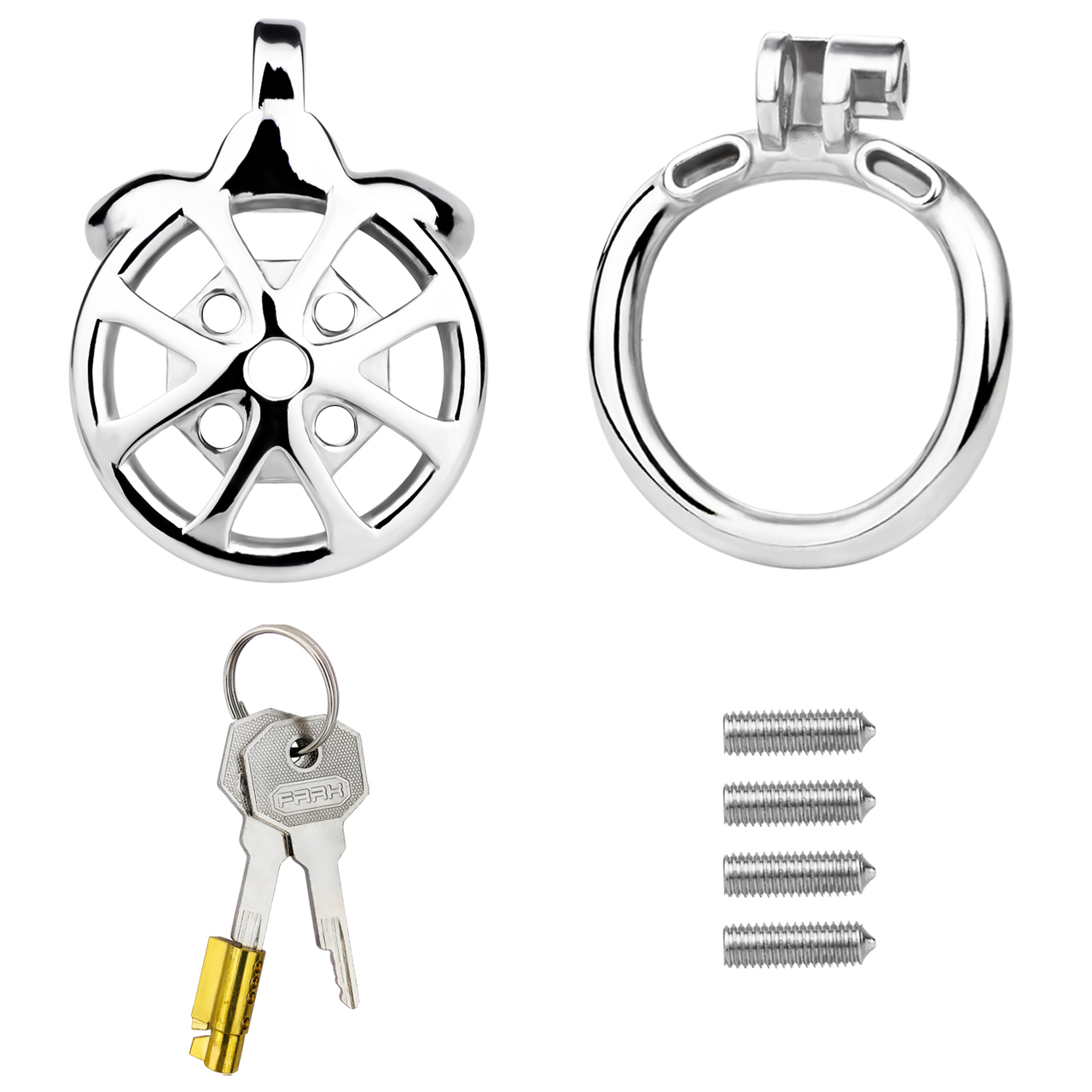 This male chastity lock is made of 304 stainless steel, which is safe, non-toxic, rust-resistant and can be worn for a long time. The design is inspired by wheels and comes with 4 rivets to stimulate your glans. The length can be adjusted according to personal needs, and the round hole in the…