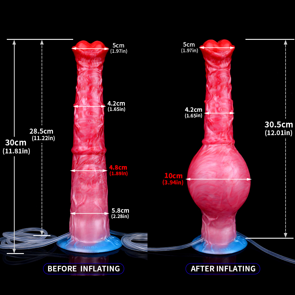 This series of animal penises has a two-in-one function. It can spray and inflate at the same time. You can add liquid to increase the joy of orgasm, or add water to clean your vagina.Bright and seductive color matching, the main body of the penis is red with white stripes, plus the charming blue suction cup at the bottom, which can be attached to any smooth surface. Enjoy the joy brought to you by this mutant penis anytime and anywhere.Function: Ejaculating and Inflatable DongColor: Red + BlueSize: 30.0 * 4.8 cm/11.82 * 1.89 inchInsert Size: 28.5 cm/11.23 inchMax Dia:10.0 cm/3.94 inchNet Weight: 629 g/1.38 lb/22.18 ozSyringe: 100 mlMaterial: SiliconePower: NoMaterial: ABS + SiliconePackage: Color BoxFurther: Premium silicone for safe, comfortable play.