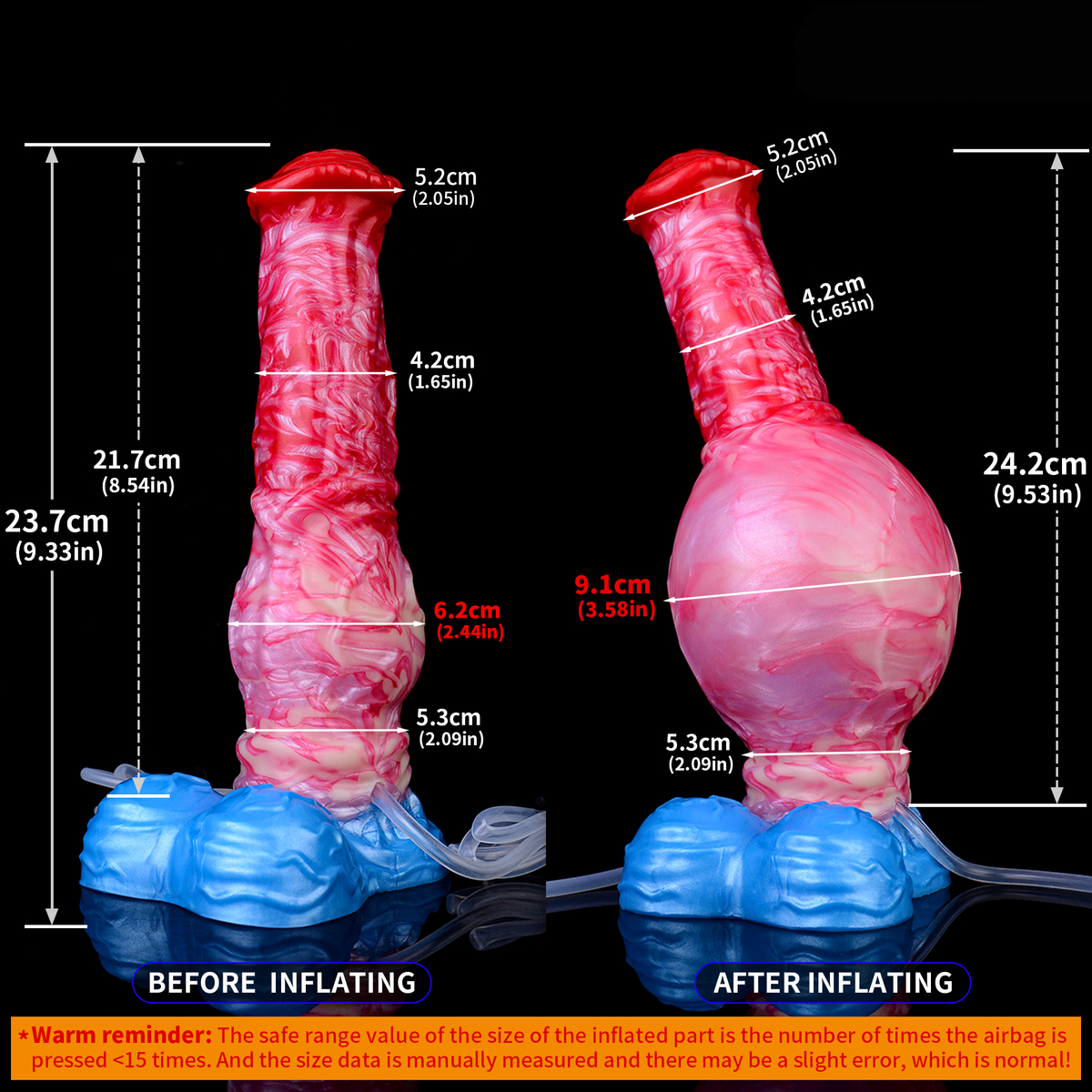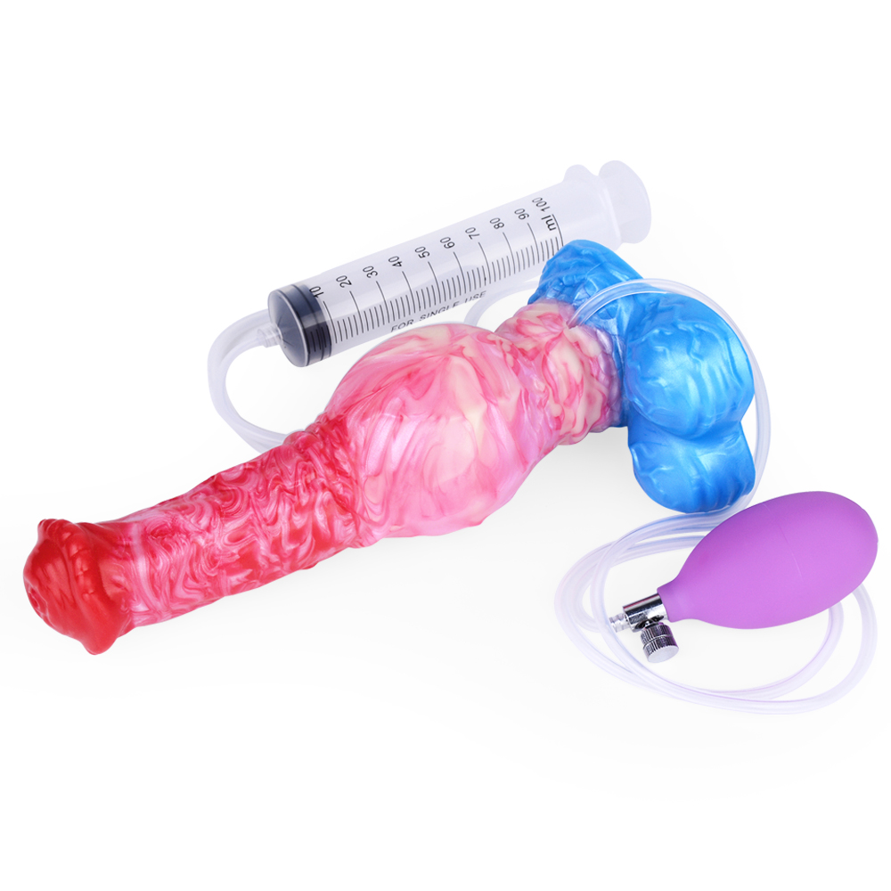 Unleash your desires with its unique combination of inflatable and simulated ejaculation features. Dive into a world of sensation with its water-spraying capability, designed to heighten your intimate experiences and bring fantasies to life.Function: Squirting & Inflatable Realistic Animal DildoColor: Pink + BlueSize: 23.7 * 6.2 cm/9.33 * 2.44 inchInsert: 21.7 cm/8.54 inchMax Dia: 9.1 cm/3.58 inchNet Weight: 651 g/1.4 lb/22.96 ozAir Bag: 30 mlSyringe: 10 mlPower: NoMaterial: SiliconePackage: OPP BagFurther: Non-toxic/SoftWARNING: The air bag should be inflated less than 15 times.