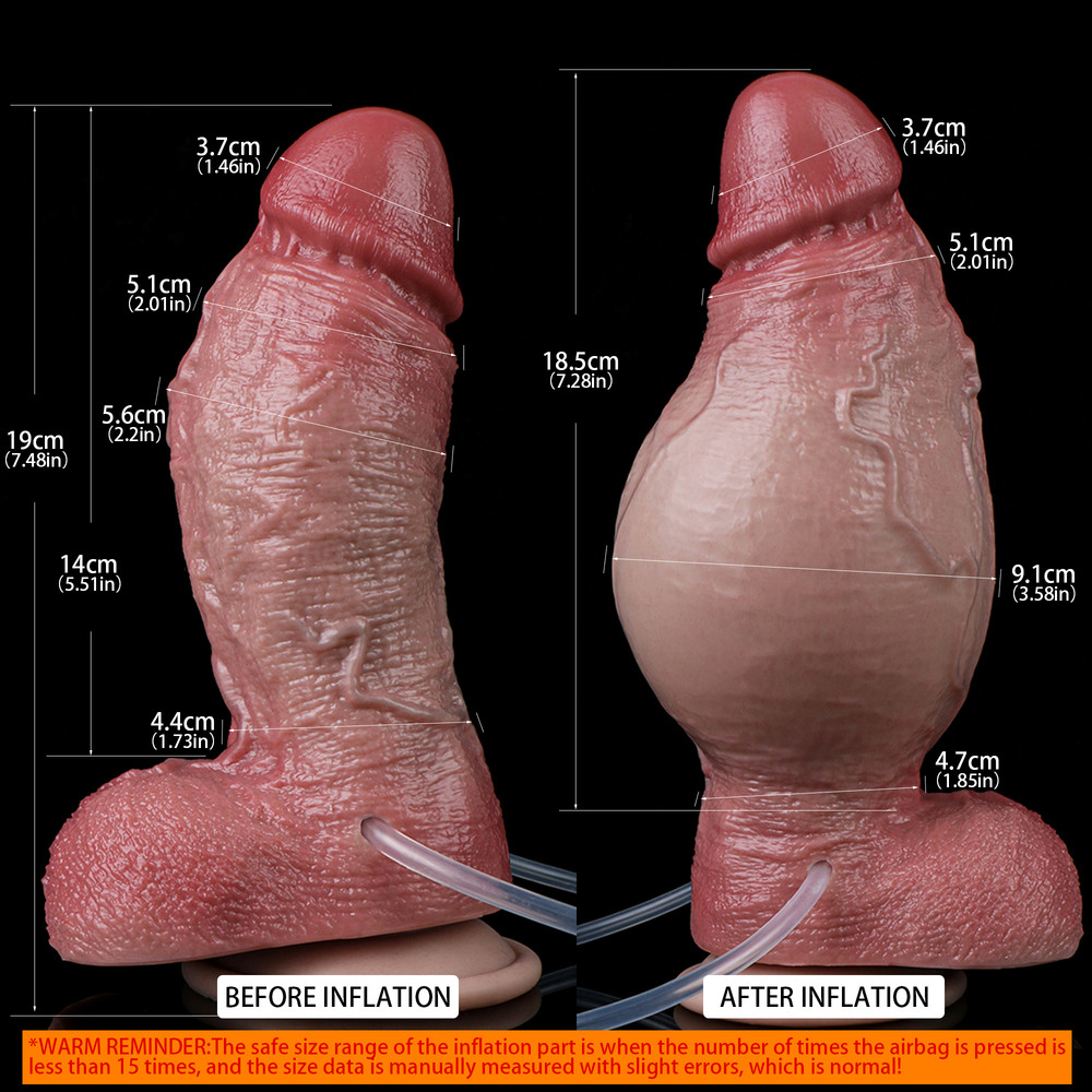 The big inflatable ejaculating dildo anal plug has a realistic head,skin texture, cyan veins and textured balls,a solid Inside and a soft outer layer, and the appearance and contact are very realistic. The thick dual density ejaculating dildo inflatable sex toy simulates real ejaculation effects to meet your diverse need.Function: Squirting And Inflatable Realistic DildoColor: FleshSize: 19.0 * 5.6 cm/7.49 * 2.21 inchInsert Length:14.0 cm/5.52 inchNet Weight: 571 g/1.26 lb/20.14 ozMax Dia: 9.2 cm/3.82 inchAir Bag: 30 mlSyringe: 100 mlPower: NoMaterial: SiliconePackage: OPP BagFurther: Soft,Safe,Non-toxic, Squirting Dildo,Inflatable Dong