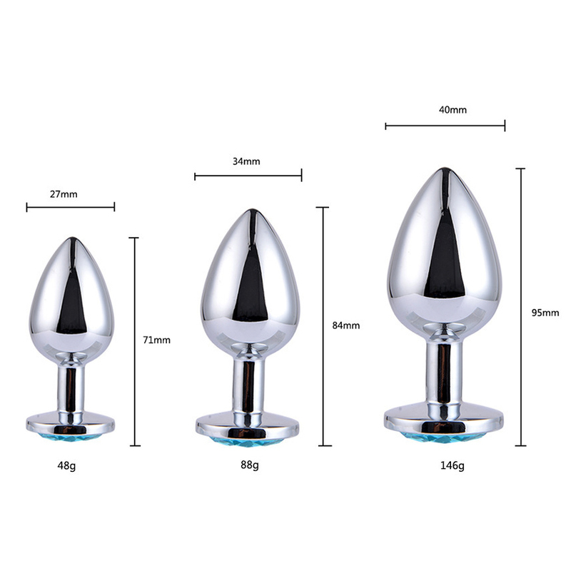 Size:XXS: 5.3*1.9 CM?XS: 6.4*2.4 CM?S: 7.3*2.8 CM?M: 8.6*3.6 CM ?L: 9.6*4.2 CM ?Color: Dark Green/Light Blue/Black/Rose/Blue/Clear/Purple/Red/Light Purple/Yellow/Green/PinkIf you pucker up, then pucker up with some of the most unique anal jewelry available. These all stainless steel plugs are designed for a nice comfortable fit for long term wear. They weigh more than other plugs reminding the wearer of what is inside. The glass cut gemstones finish off the plug and attracts lots of attention to the wearing party. These are true works of art. These jeweled butt plugs make a great gift to your loved one and you will love putting them on them!4 inches in length, 1.5 inches at widest point, 0.375 inch stem. Available in a variety of nine different colors: Crystal/Diamond, Clear Green/Emerald, Ruby Red, Purple, Pink, Yellow, Jet Black, Light Blue, Lavender.