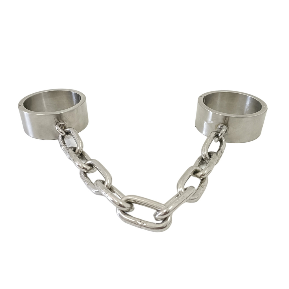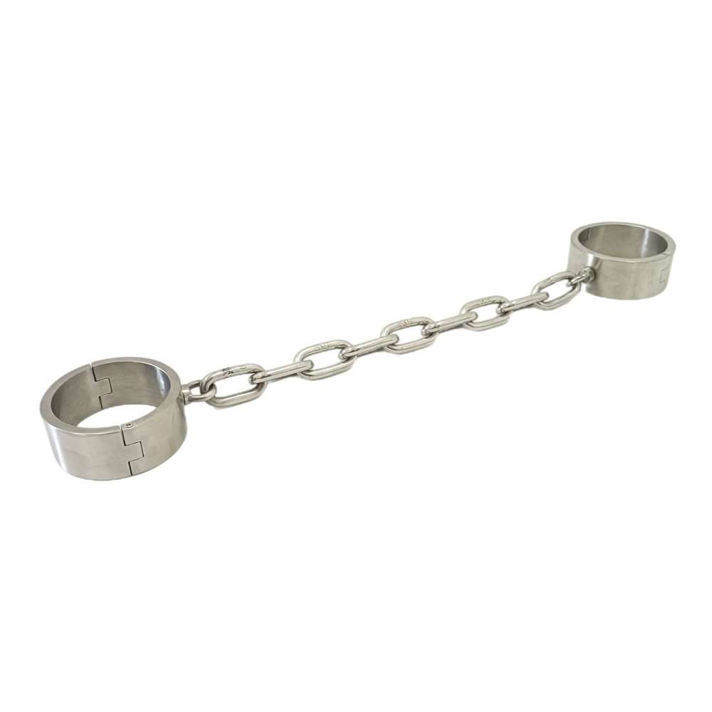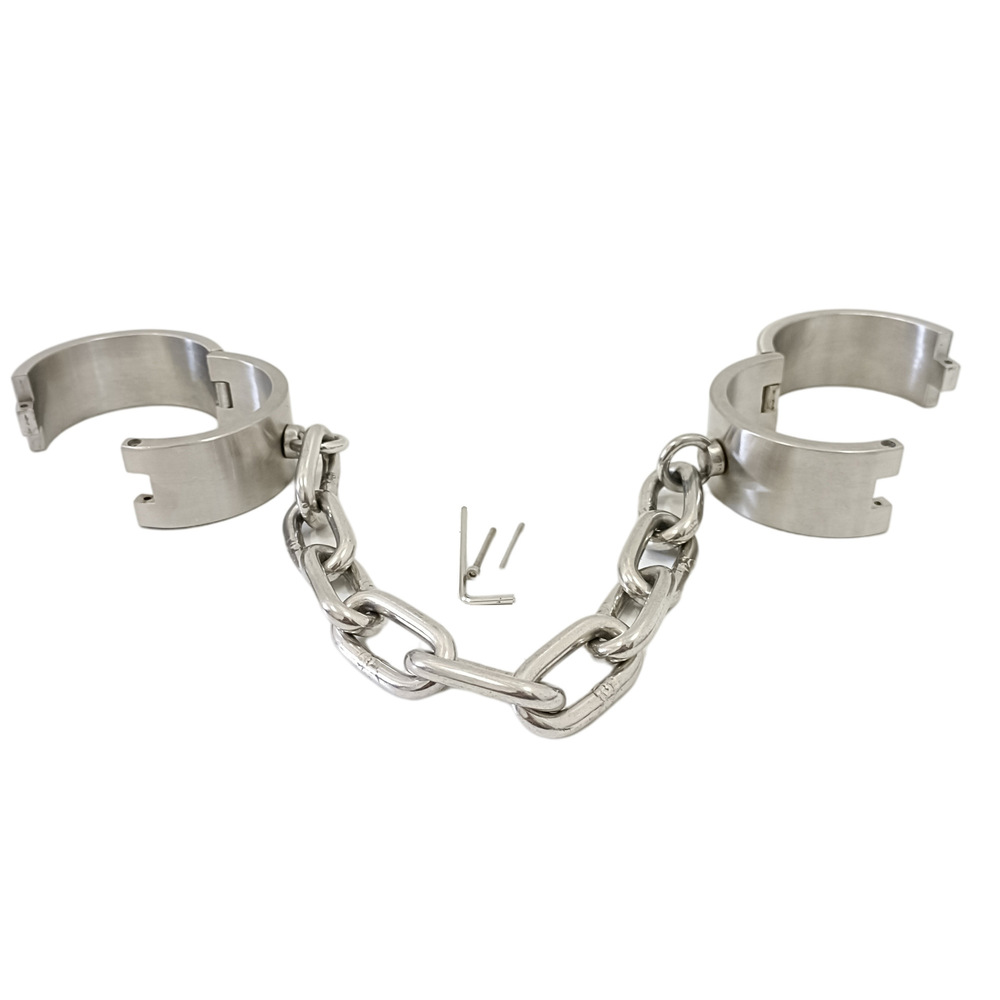 Matching set of cuffs and shackles with integrated allen key screw lock. Made of high quality heavy stainless steel. Cuffs include a connecting link.