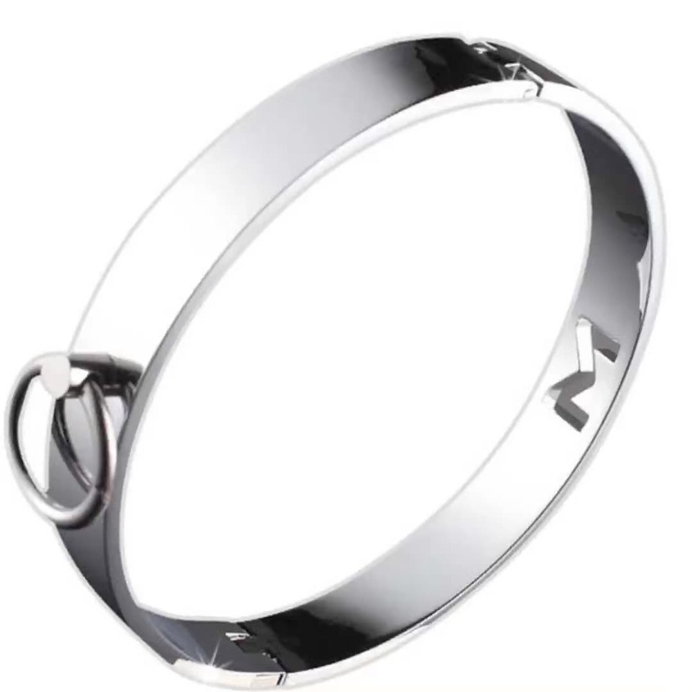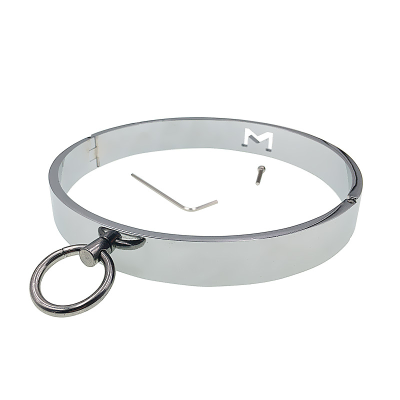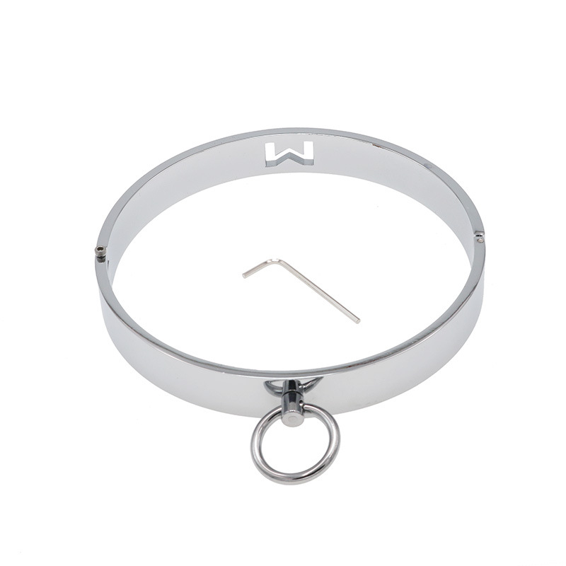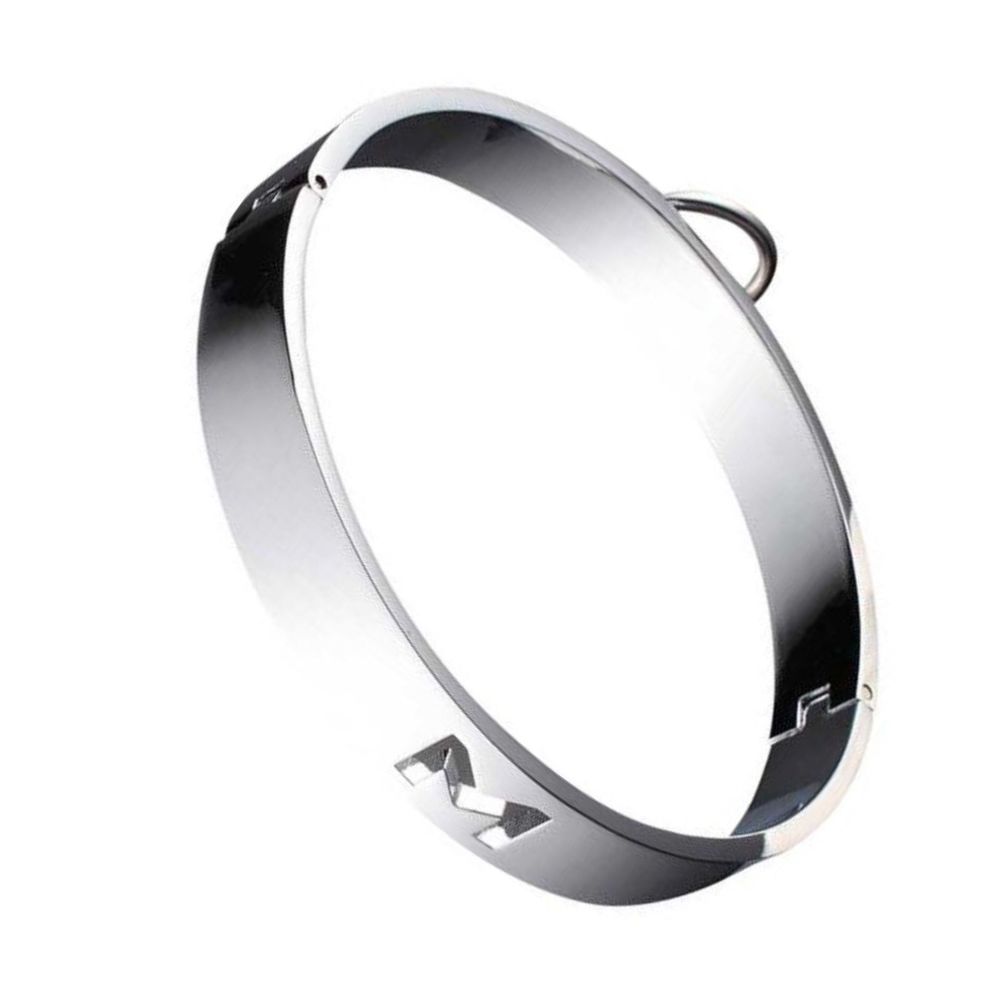 Unisex Chrome-plated Steel M Hollow-out Collar Restraint with Magnet Locking Pins.