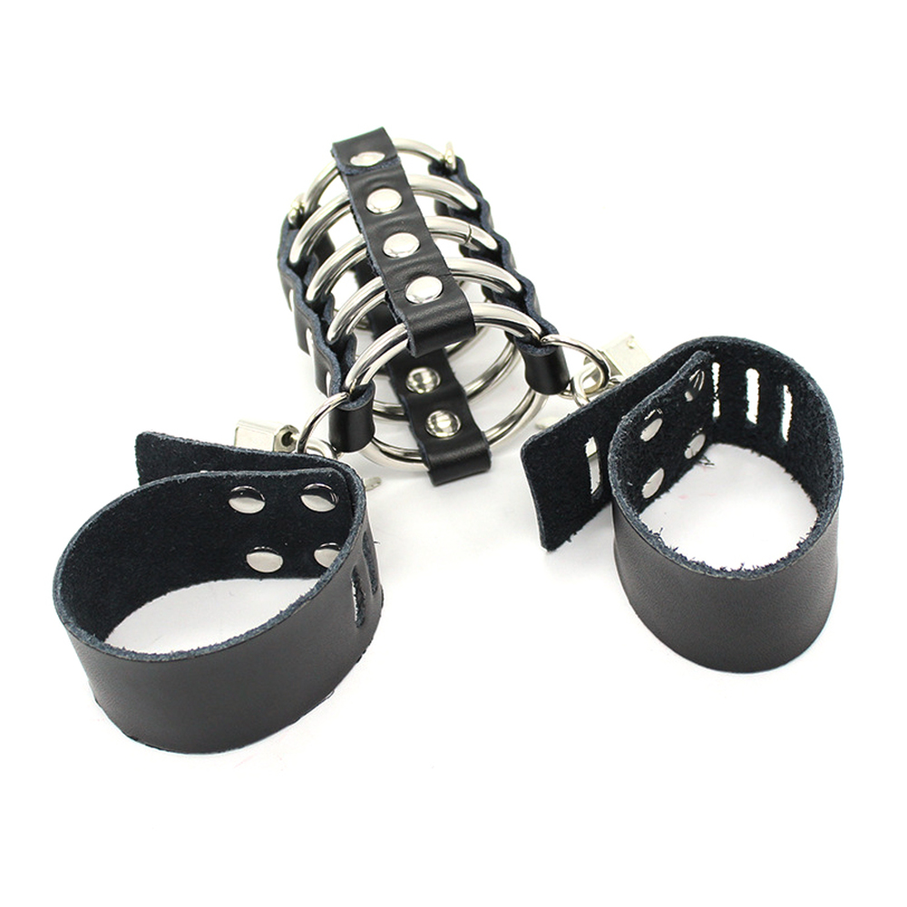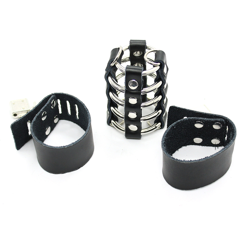 Two different lock and key combinations keep you at bay whilst your lover tantalises you with everything you desire. One key keeps you cock, one your ball sack – both trussed up securely in leather and steel. .?