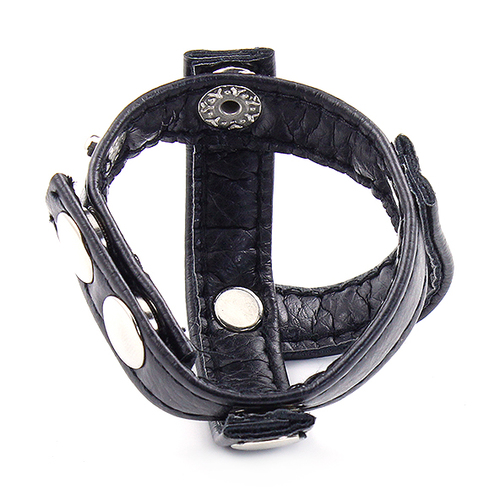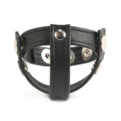 The Strict Leather Snap-On Cock and Ball Harness makes a bold statement, regardless of what side of the power-exchange it’s on. Acting as a cock ring, this harness on a Dom can create a stronger, more powerful erection to deliver to His bratty sub. For a little CBT or orgasm denial, a male-bodied sub can be forced to wear this harness on the tightest of its three settings. One strap goes around the balls, and one between them, for a dramatic look as well as better access for whatever devious plans are in store for them.