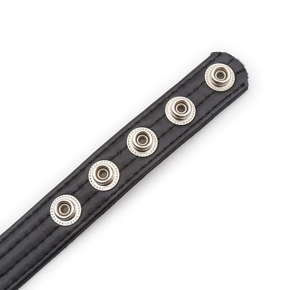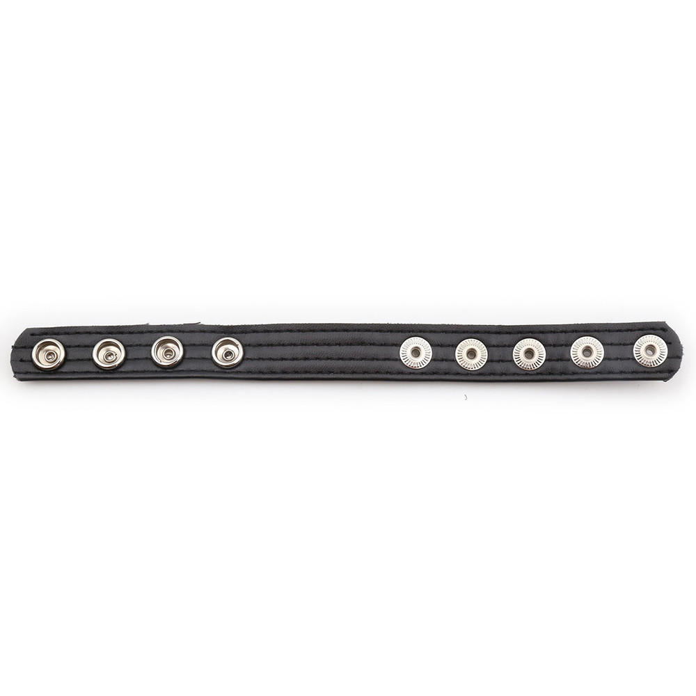 High quality 9 inch speed snap cock ring with 5 snap sizing slots. Used to hold erections harder and longer. Also can provide additional sexual stimulation. To obtain stronger erections place the cock ring around both the ball sack and the penis. One size fits all.Material: PVC/Leather