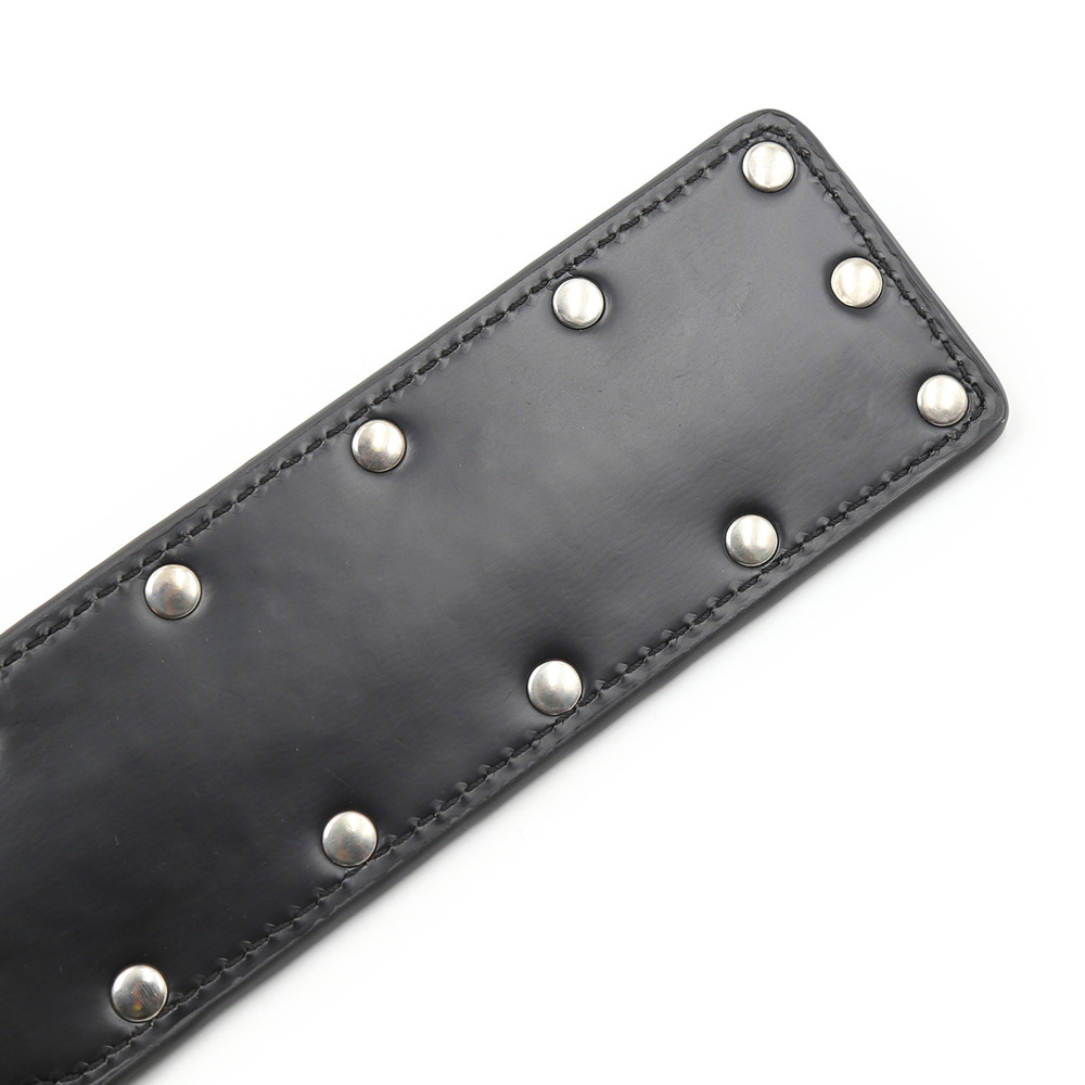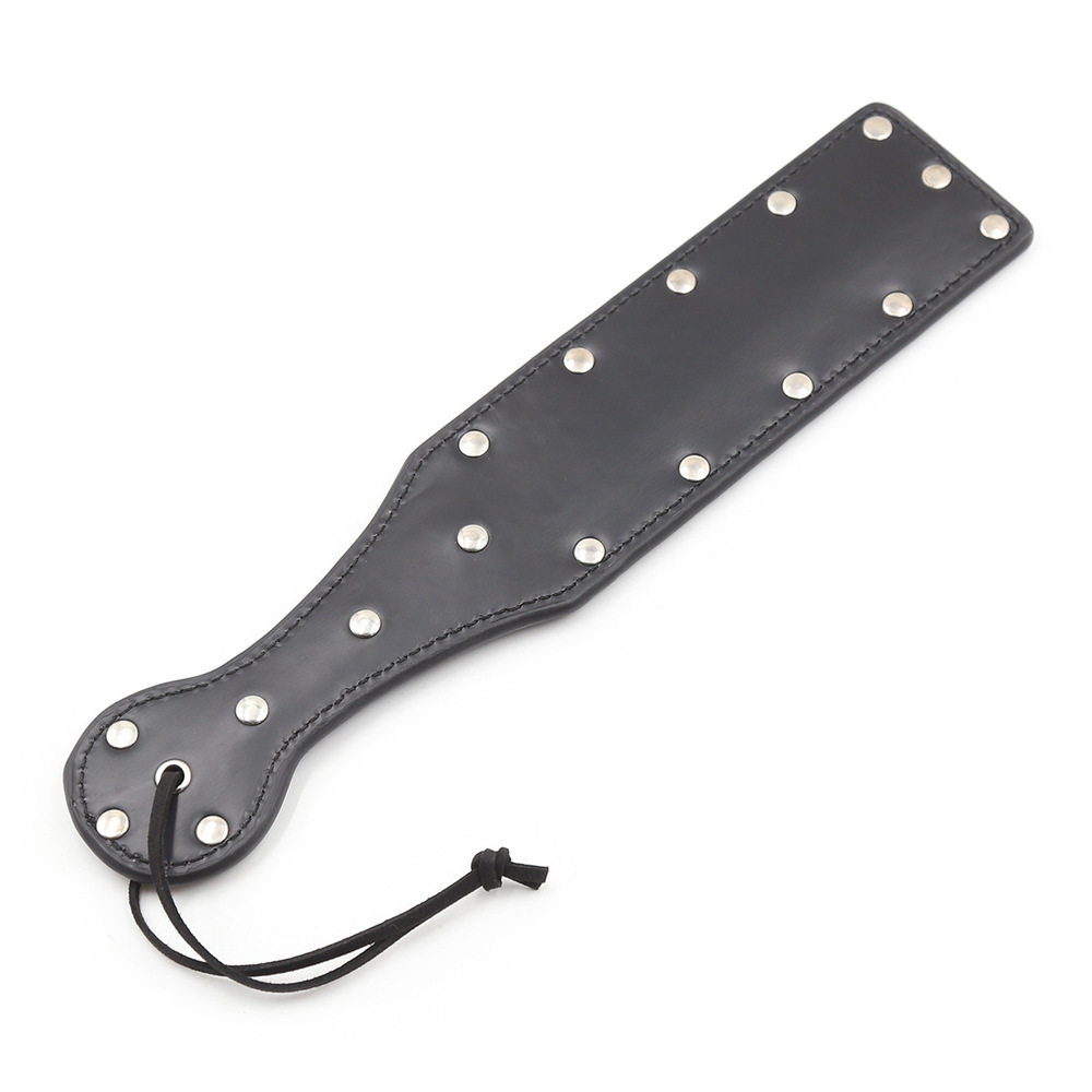?Initiate your slave into your sexual fold with this red durable leather fraternity paddle. This studded paddle is made of high-quality leather material and will leave a nice stinging sensation on your partner when in use. There??s a firm handle grip with leather tie for hanging. Kind of what will happen to their rear with extended us of this paddle.