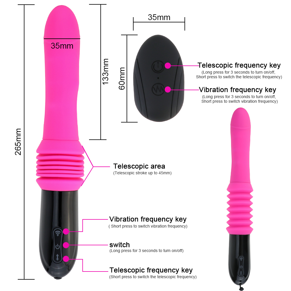 Function: 3 Speeds 10 Frequency VibrationColor: Purple/PinkSize: 23 * 3.5 cm/9.1″ * 1.4″Telescopic distance: 4.5 cm/1.8″Power: 2 AAAMaterial: ABS + SiliconePackage: Color BoxFurther: Waterproof, USB Recharge