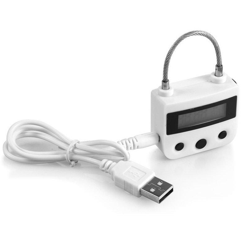 No matter how much you beg and plead, this ingenious lock has a set release that ensures you serve your time! While most locks rely on human whims, this digital lock controls whatever it is attached to- use it for bondage, ball gags, or their favorite toy. Revel in a complete loss of power, whether you are being punished by your owner or engaging in escape-proof self-bondage. One of our favorite ideas is to lock up the key of a chastity device in a box or cabinet. You will have to stare at the time left, building anticipation and arousal with each passing second. The lock is USB rechargeable, with a max time of 99 hours. That is over four days of being trapped or restrained, with no hope of escape except to wait out your time until the countdown is finished. When the timer has finally run down, a tone sounds, signaling your release. The interface is easy to use and instructions are included. Just make sure the lock is fully charged and structurally sound prior to securing it- once it is on, there is no escape!?Function: Electronic LockColor: Black/WhiteSize: 4.6 * 4 * 2 cm/1.8″ * 1.6″ * 0.8″Steel rope: 9 * 0.25 cm/3.5″ * 0.098″Net Weight: 52 g/0.11 lb/1.8 ozPower: Lithium batteryMaterial: MetalPackage: OPP BagFurther: Waterproof, LCDMax Lock Time: 99 Hours