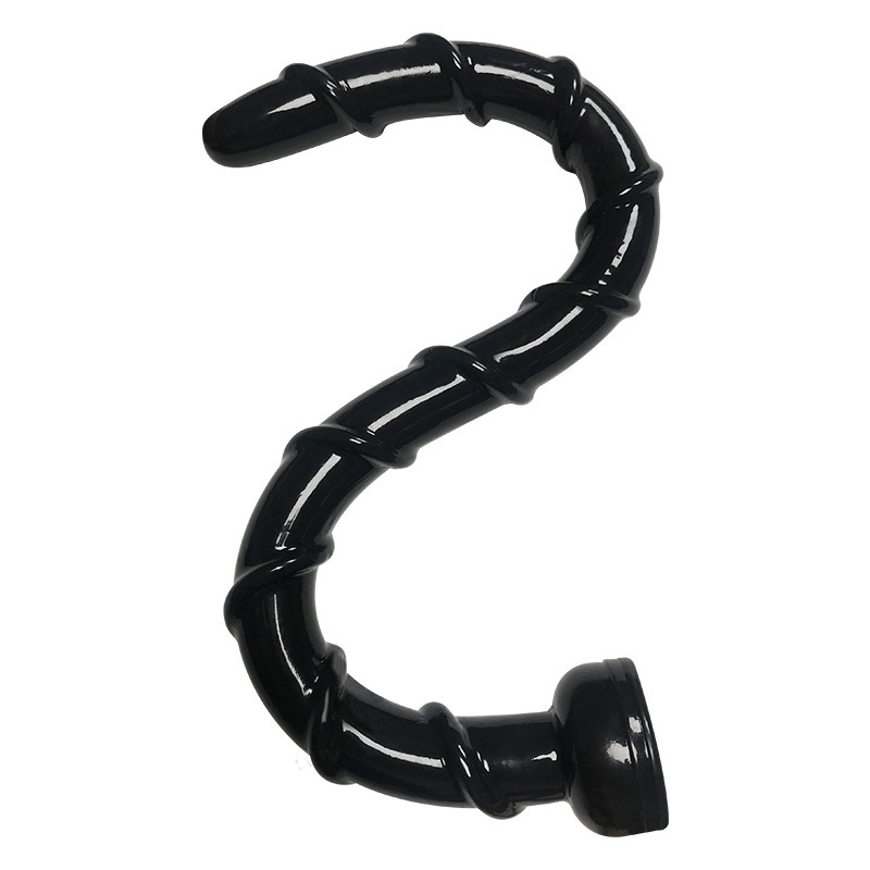 This skinny shaft will slither further than you thought was possible as your twist it in! The flexible, yet still firm material allows it to snake into you, curving with your inner walls. The spiraling ridge will massage your anus as is goes deeper and deeper. How much can you handle? Suction down…