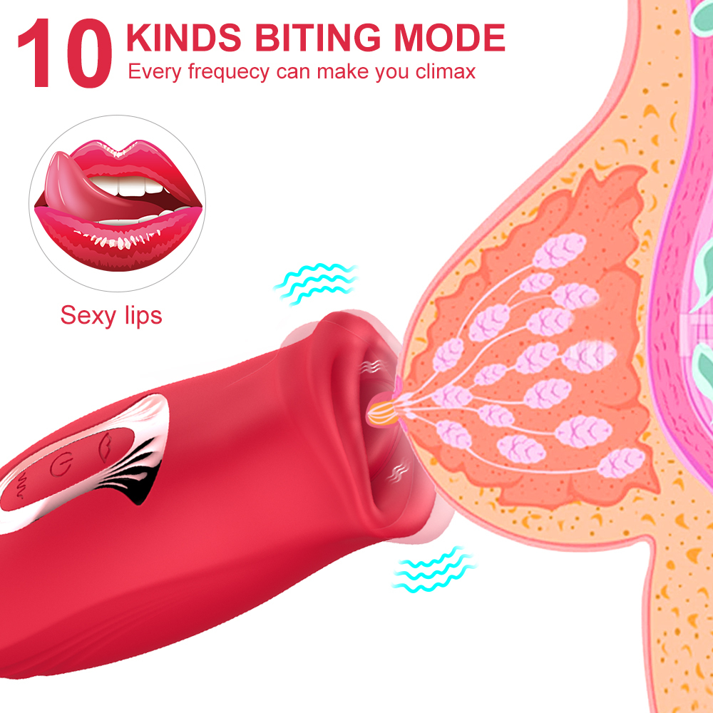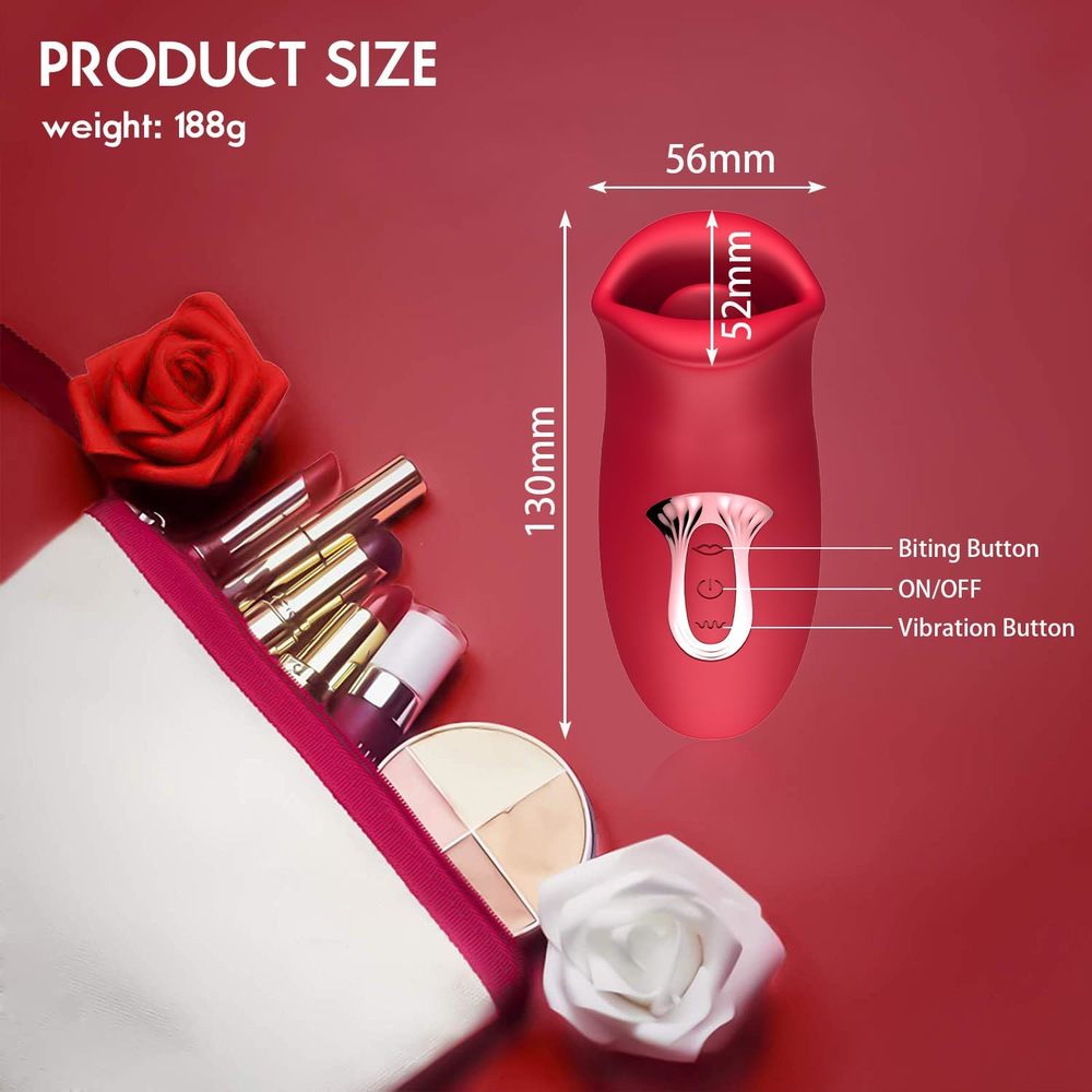 Delve into your pleasure zone with this sweet, rose-red biting, vibrating, realistic tongue sex toy! It is the latest revolutionary clitoral stimulator. And it has ten dynamic vibrations and ten patterns of bites.