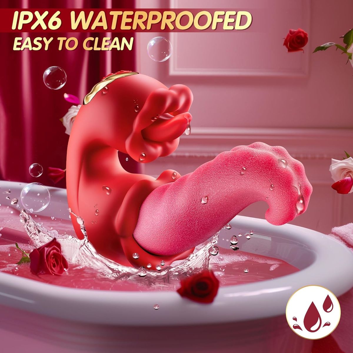 The standout feature of this rose toy is its dual tongue design, which mimics the realistic action of lips and tongue licking and swirling. Offering multiple sensations, it provides triple stimulation from both the inside and outside. This makes it a versatile addition to any collection of sexual pleasure tools for women.This innovative rose-shaped vibrator combines swinging, licking, and vibrating functions to stimulate the clitoral, vaginal, and G-spot areas simultaneously. Unlike other female sex toys or thrusting dildos, it offers a unique and exhilarating experience, setting a new standard for G-spot vibrators. The multifunctional design ensures every use is exciting and satisfying, introducing a completely new sensation among women’s sex toys.Function: 3Speed 7 Frequency swinging, licking, and vibrating functionsColor: RedSize: 13.8 * 10.0 *4.80 cm/5.44 * 3.94 * 1.89 inchNet Weight: 320 g/0.70 lb/11.29 ozPower: Lithium batteryMaterial: ABS + SiliconePackage: Color BoxFurther: WaterproofPackage Size: 15 * 10.3 * 5.2 CM
