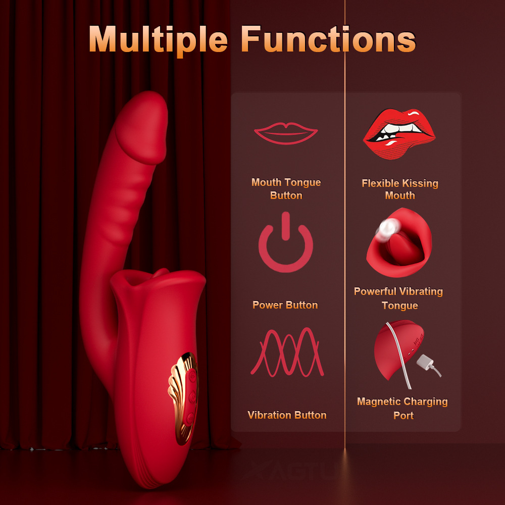 Function: 10 Frequency Vibration/Tongue LickingColor: RedSize: 24 * 3.5 cm/9.4 ?* 1.38 inchInsert: 14.5 cm/5.7 inchPower: Lithium batteryMaterial: ABS + SiliconePackage: Color BoxFurther: Waterproof/Licking