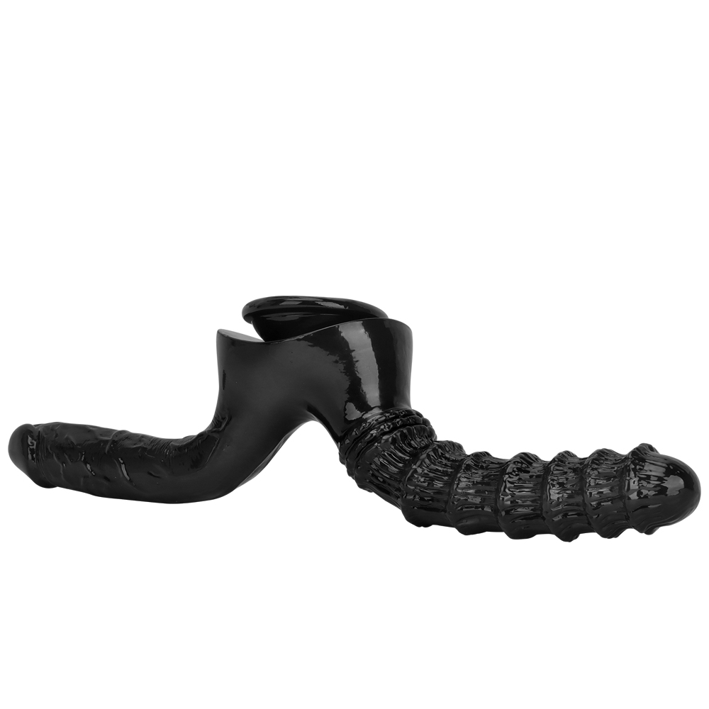 Embark on a sexual journey together with your partner using the Twin Riders Dildo. It has two dildos attached to the same suction cup. This love toy takes you far into the deepest corners of your pleasure zones.Function: Twin Riders DildoColor: BlackFull Length: 27.5 cm/10.82 inchLong Size: 22.0 * 4.3 cm/8.67 * 1.69 inchShort Size: 18.5 * 3.6 cm/7.29 * 1.42 inchNet Weight: 880 g/1.94 lb/31.04 ozPower: NoMaterial: PVCPackage: OPP BagFurther: Soft,Safe,Non-toxic,Experience Double the Pleasure with Twin.