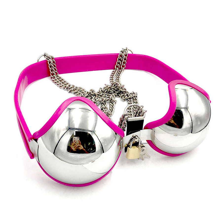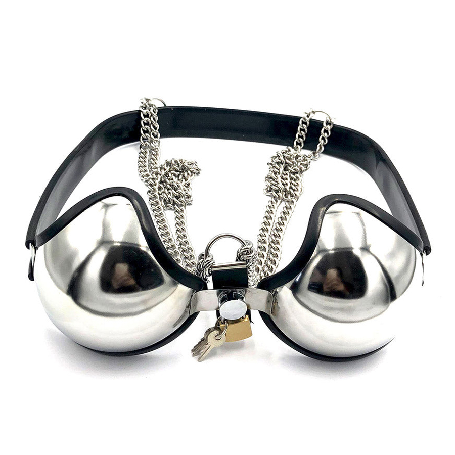 Made from premium stainless steel, this bra wraps your breasts in an enchanting embrace, providing a firm and unyielding sense of restraint. The front is adorned with a copper lock, making escape nearly impossible without the key. The chain-style shoulder straps add a touch of sensuality, enhancing its allure and giving you a tantalizing look.