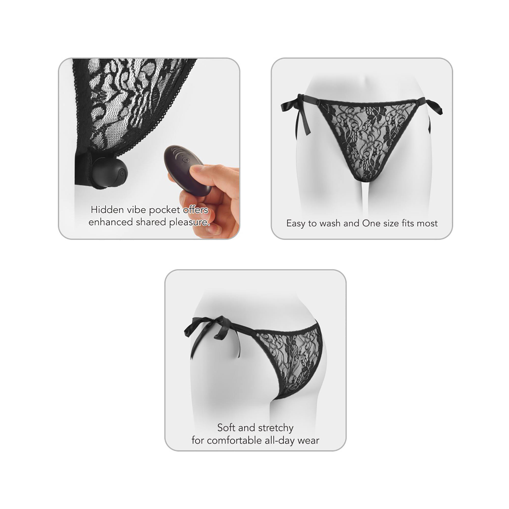 Cute and feminine with a devilishly naughty secret, Thanks to the completely remote controlled insertable bullet that delivers intense G-Spot stimulation for a all-day wear.With sheer lace and low rise waistband ,soft lace hugs and flatters as the hidden bullet nestles against your clitoris for…