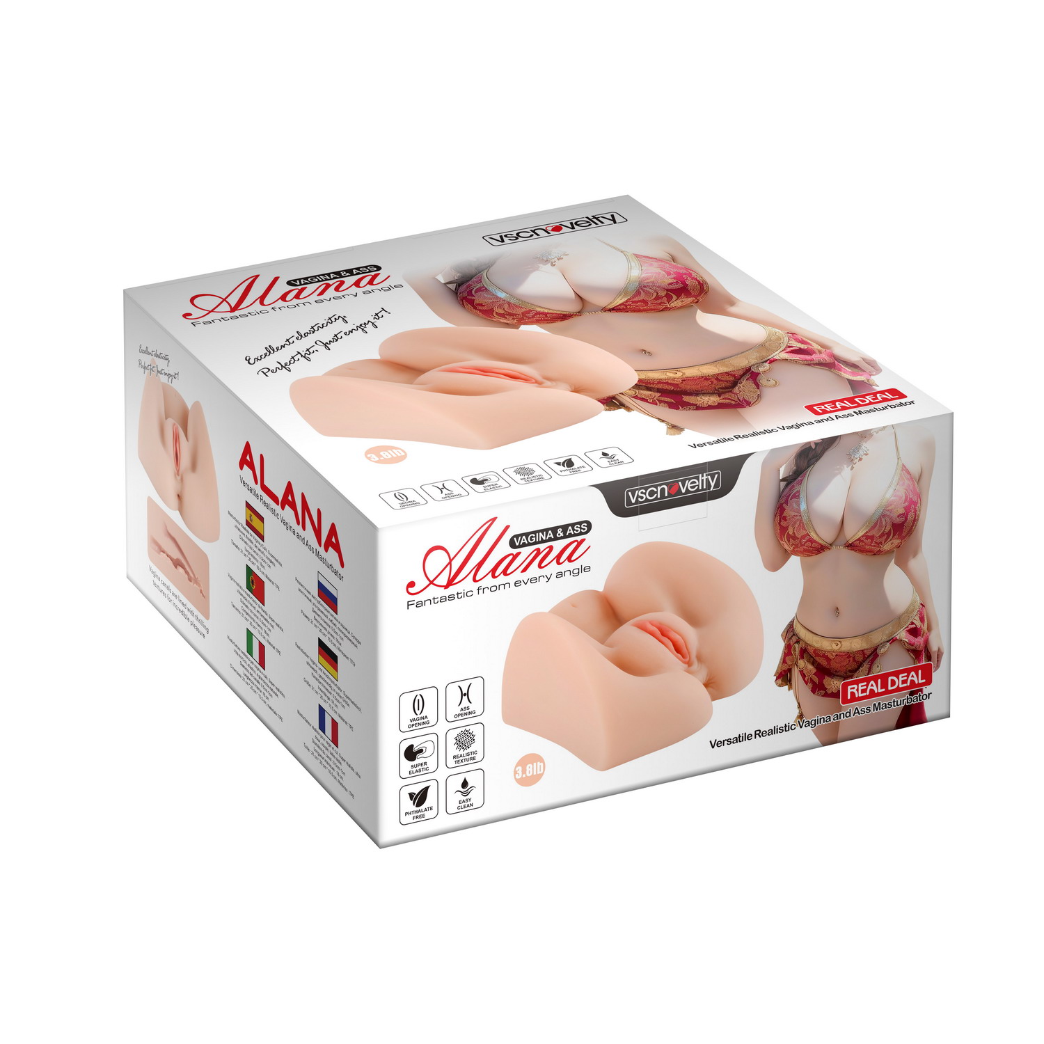 Grab hold of Alana and prepare for climax ahoy emulating missionary, doggy style and cowgirl positions. With its spread legs and a rounded bottom, it looks and feels fantastic from every angle, and feels just like the real deal.All the fun of a full-size masturbator in a petite package, this male stroker boasts a pussy and ass that lead to a deep tunnel packed with raised bumps to plunge into.Inside each canal you’ll experience an array of stimulating textured nubs, grooves and ribbing to enhance sensations. Explore her lush vagina measuring a tiny 0.4 inches in width, or mix things up and take her from behind in her petite 0.2 inch ass opening.To enhance the realistic feel of its supple material, warm the toy in warm water and lavish yourself and the tunnel with water-based lube.Key features. Male masturbator with inviting vagina and anus holes to plunge into. Raised bumps line the deep tunnel to stimulate with every thrust. All the fun of a full-size masturbator in a petite, travel-friendly package. Made from soft, supple TPE that looks and feels so real. Weighty, stable and in position for play on demand – hands-on or hands-freeMaterial:Latex-Free, Phthalate-Free TPE8.25 inches (21cm) x 7.8 inches (20 cm) x 4.1 inches (10.5cm)Vagina internal length – 7 inches ( 18cm)Vagina canal width – 0.4 inches (1cm)Ass internal length – 7 inches ( 18 cm)Ass canal width – 0.2 inch (0.5cm)Opening: Vagina & ButtPackaged Size:11x21x20.5 cmPackaged Weight:1.8kg