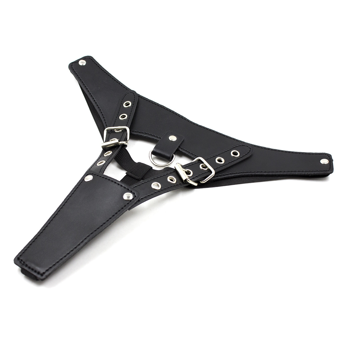 Female Sexy Stretchy Black Fetish Faux Leather Detachable Thong.