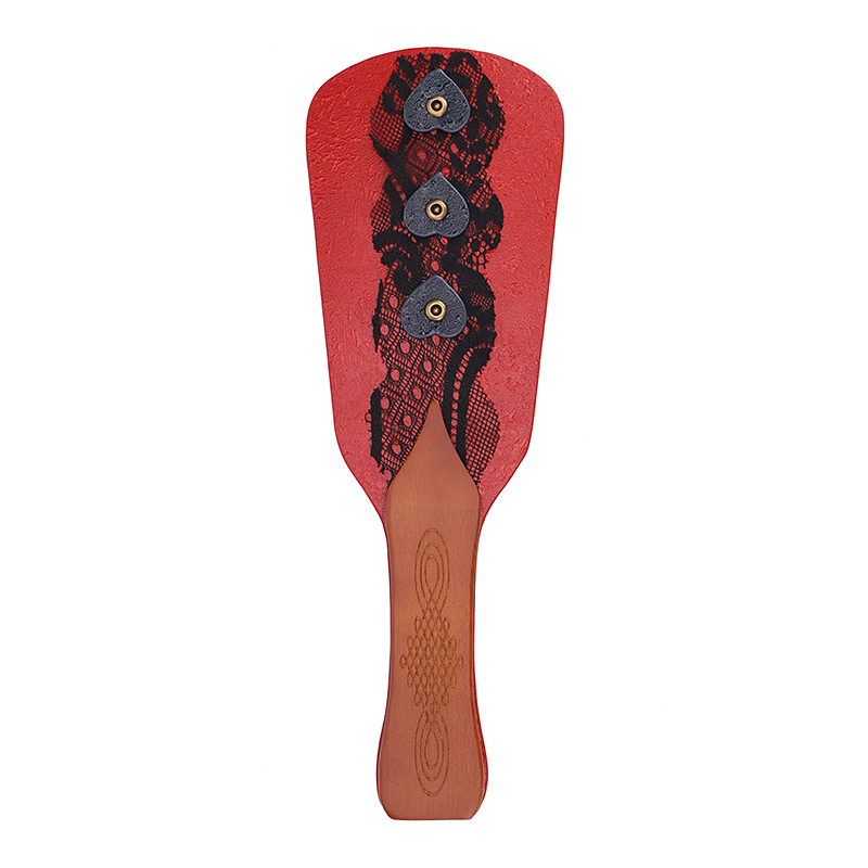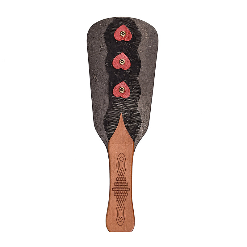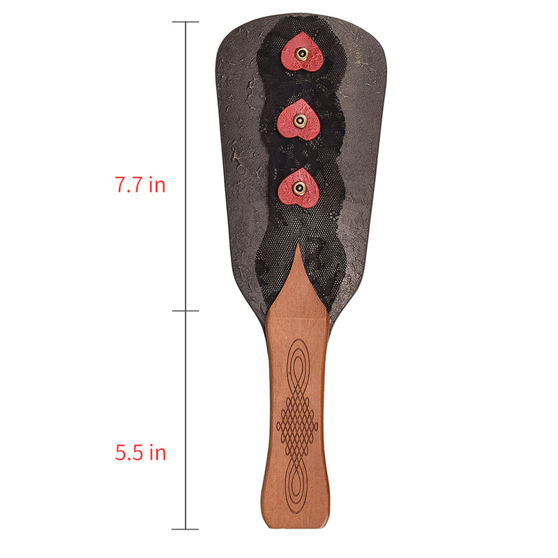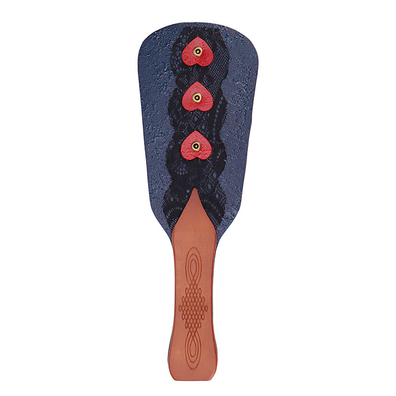 Wooden Handle Paddle With Coloured Leather And Lace And Heart Decorations For Added Texture And A Pretty Appearance!